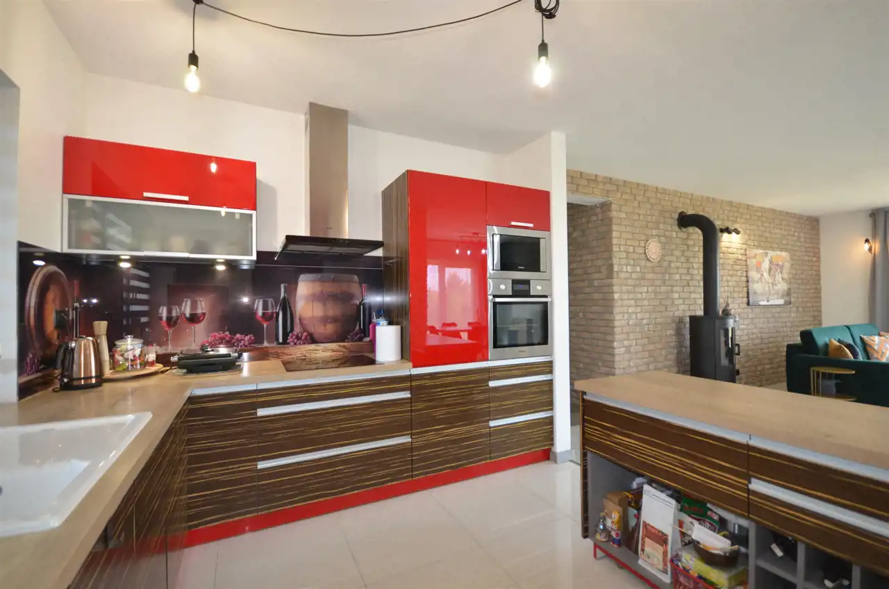 Dom wybudowany w technologi murowanej przy użyciu materiałów wysokich standardów , częściowo podpiwniczony, z poddaszem nieużytkowym. Dach wielospadowy pokryty dachówką ceramiczną, okna PCV- 3 szybowe, drzwi wejściowe antywłamaniowe . Ganek domu wyłożony kamieniem łupanym,