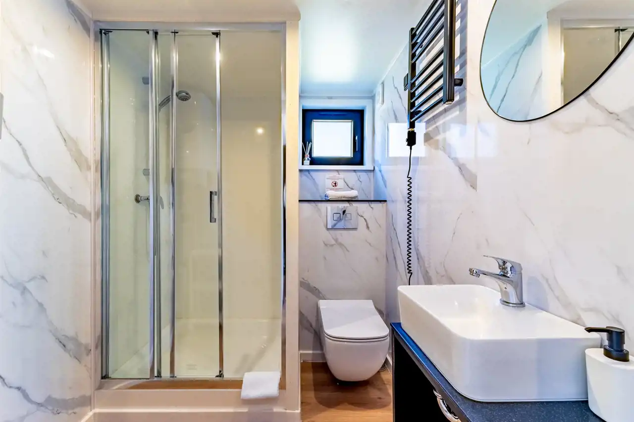 Domek został przygotowany tak, aby zapewniać wygodę zarówno właścicielowi, jak i gościom: