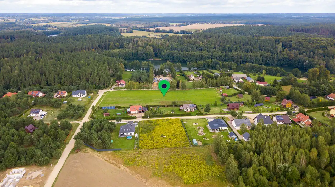 Działki przeznaczone na sprzedaż znajdują się przy ul. Warszawskiej. Działki znajdują się w okolicy lasów i wielu jezior. Najbliższe Jezioro Korweskie oraz około Jezioro Isąg.