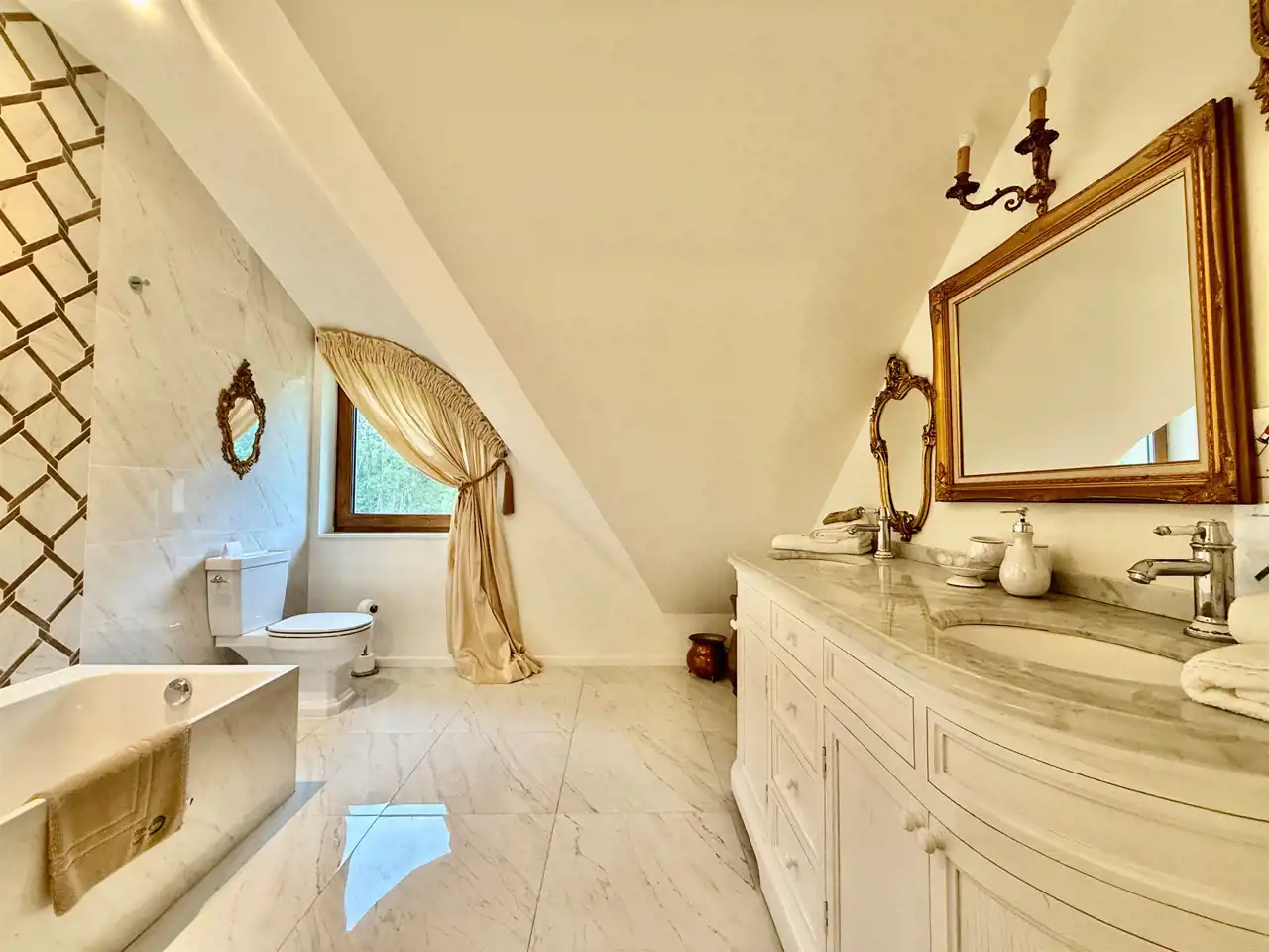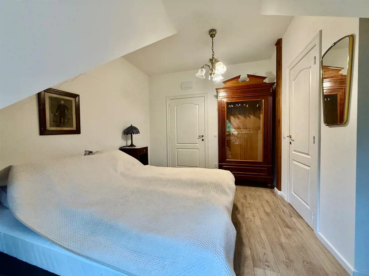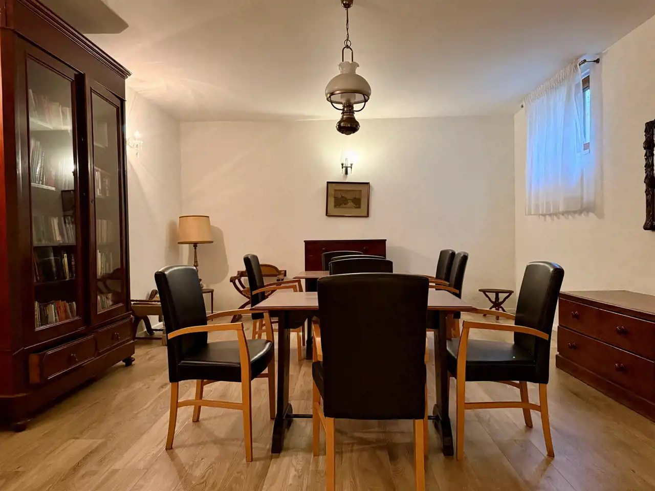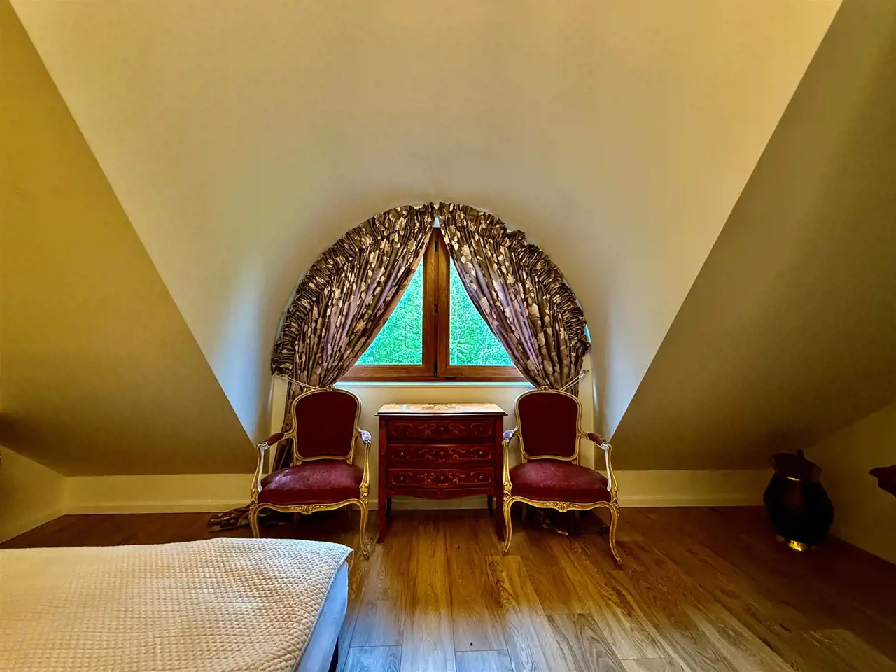 Na piętrze znajduje się dziesięć stylowych pokoi, każdy z własną łazienką. Goście mają również do dyspozycji osobną, w pełni wyposażoną kuchnię, co sprawia, że piętro może funkcjonować niezależnie. Na zewnątrz znajdują się dwa tarasy oraz okrągły basen o średnicy dziewięciu metrów i głębokości 1,4 m – gotowy do użytku.