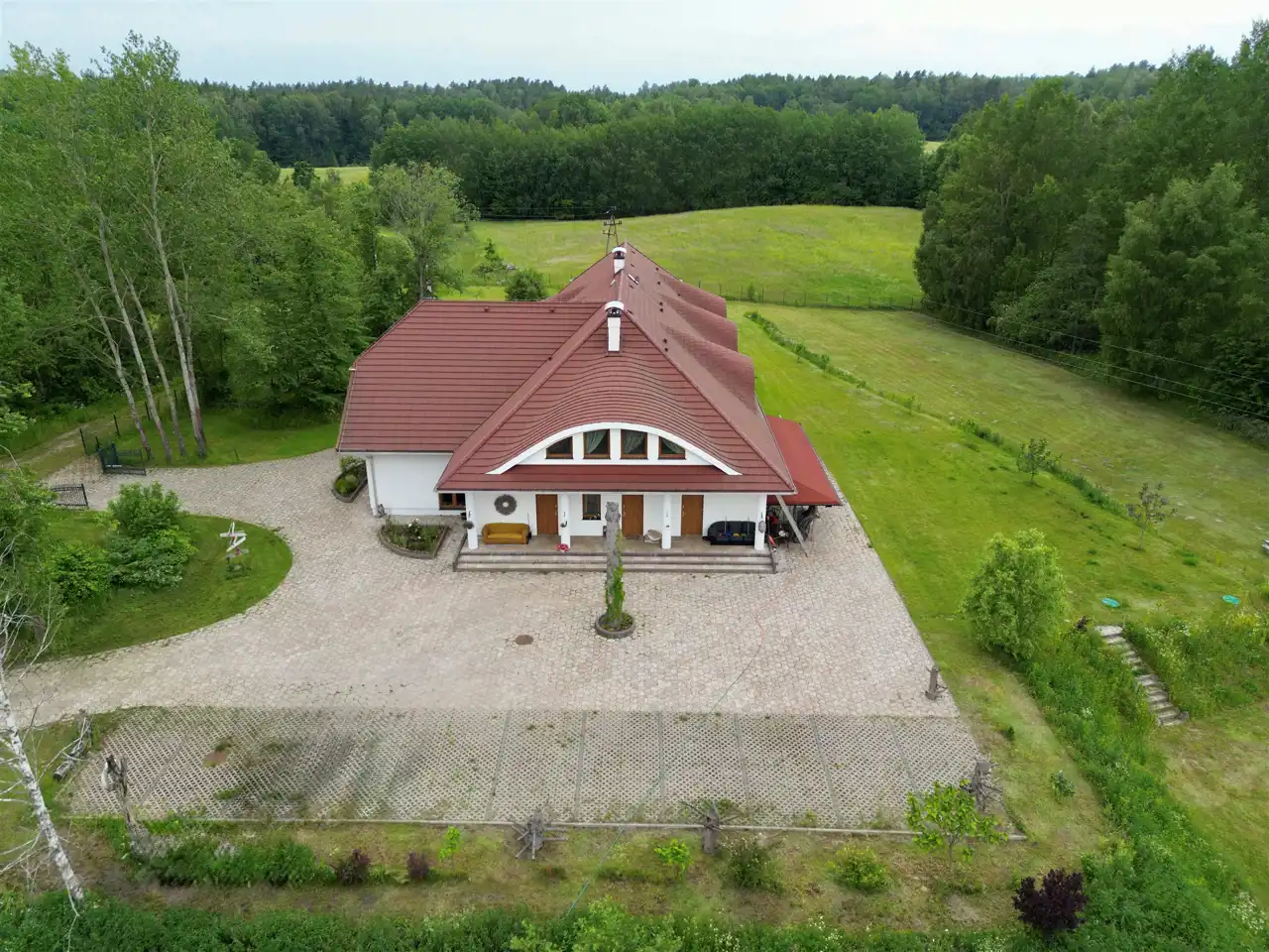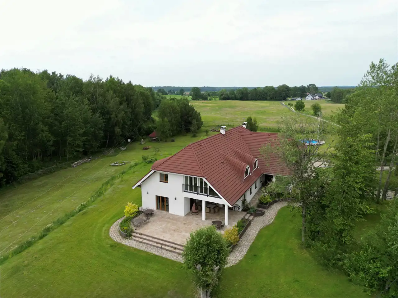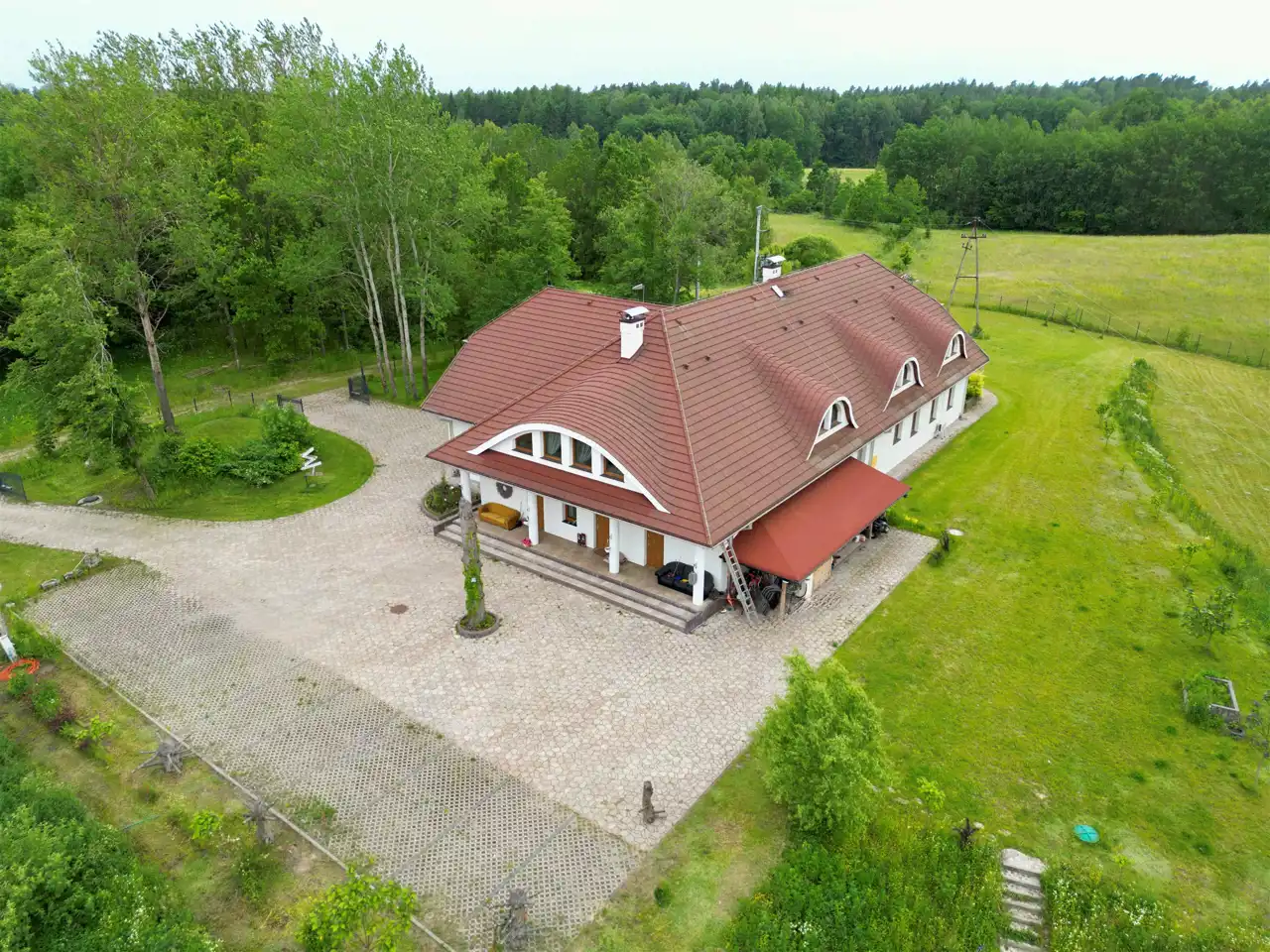 W sercu Warmii, pośród zieleni i ciszy, zaledwie 200 metrów od dzikiego jeziora Czarnego, znajduje się nieruchomość, która łączy ponadczasową estetykę z nowoczesnym komfortem.
