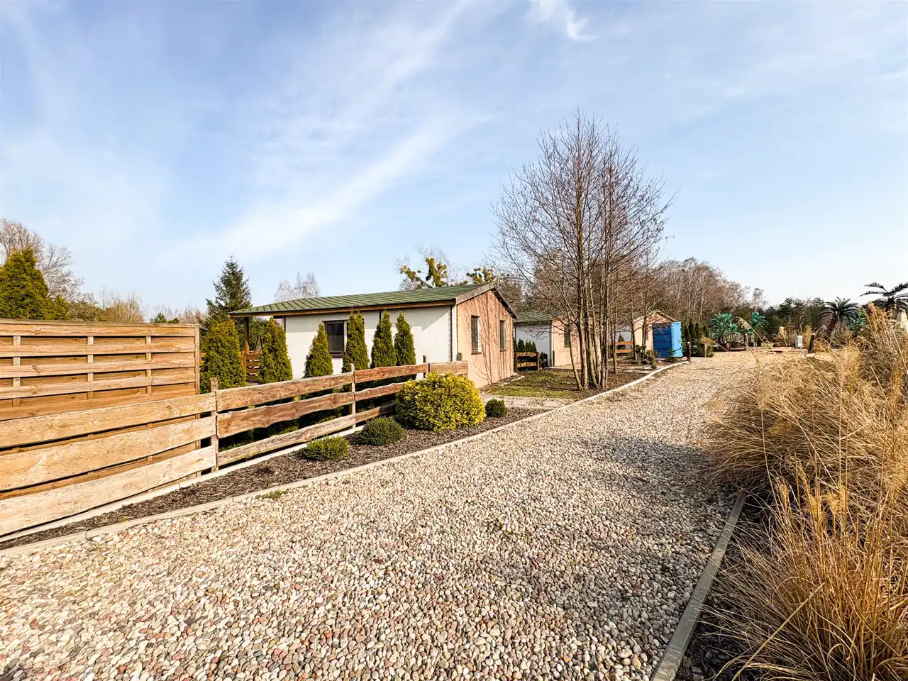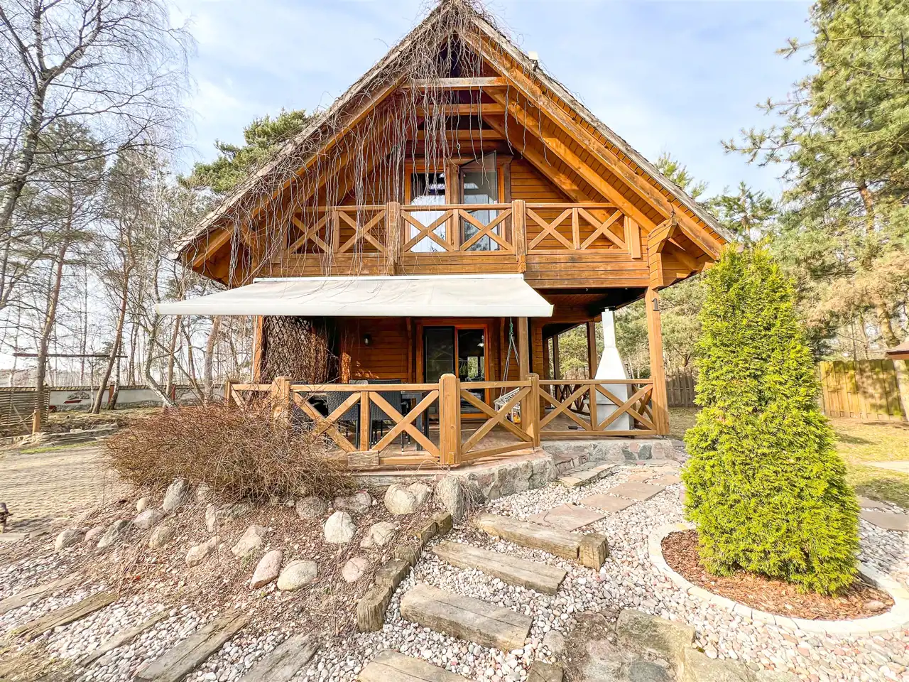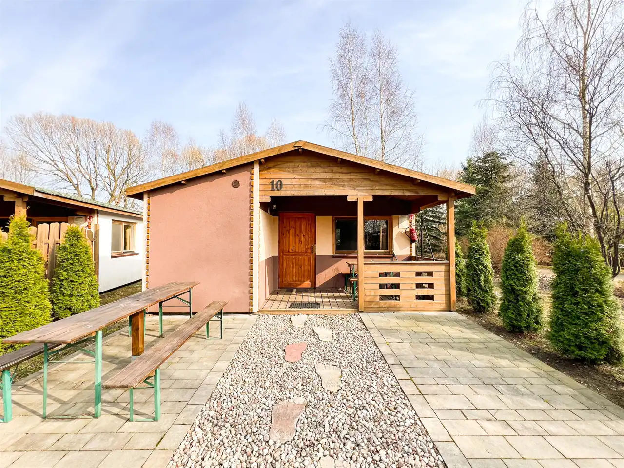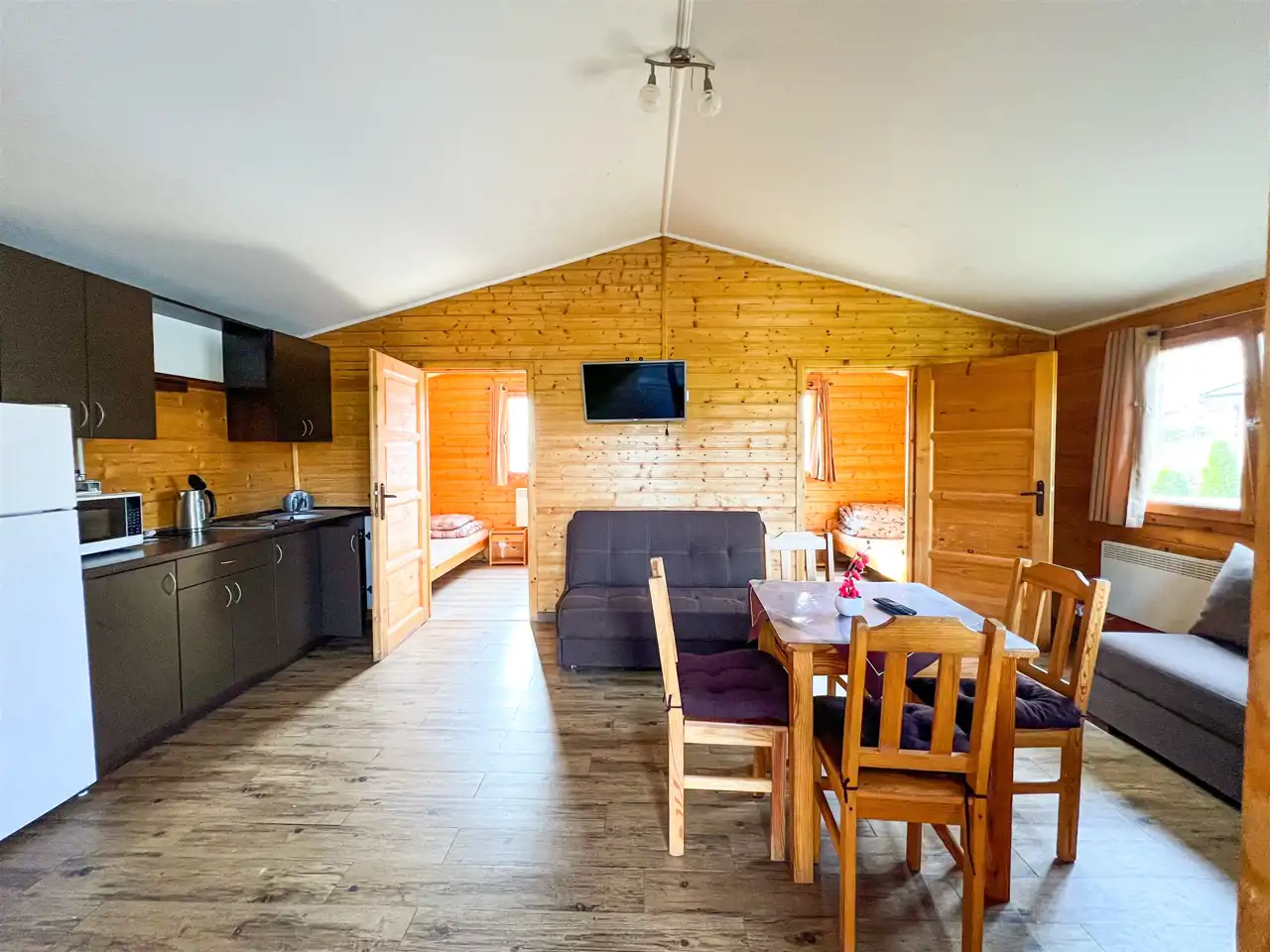 Na terenie ośrodka znajduje się Pensjonat stanowiący główną recepcję, wyposażony w zaplecze gastronomiczne oraz łącznie 14 domków rekreacyjnych ( 11 domków parterowych, 2 domki drewniane, całoroczne oraz jeden domek drewniany, całoroczny Myśliwski). Każdy domem posiada własna strefę wypoczynkową z miejscem na grilla, dodatkowo 2 domki drewniane, piętrowe wyposażone są w prywatne baseny. Domek Myśliwski wyposażony jest w kominek, basen, saunę, banie ruską oraz altankę z miejscem na ognisko i grilla.