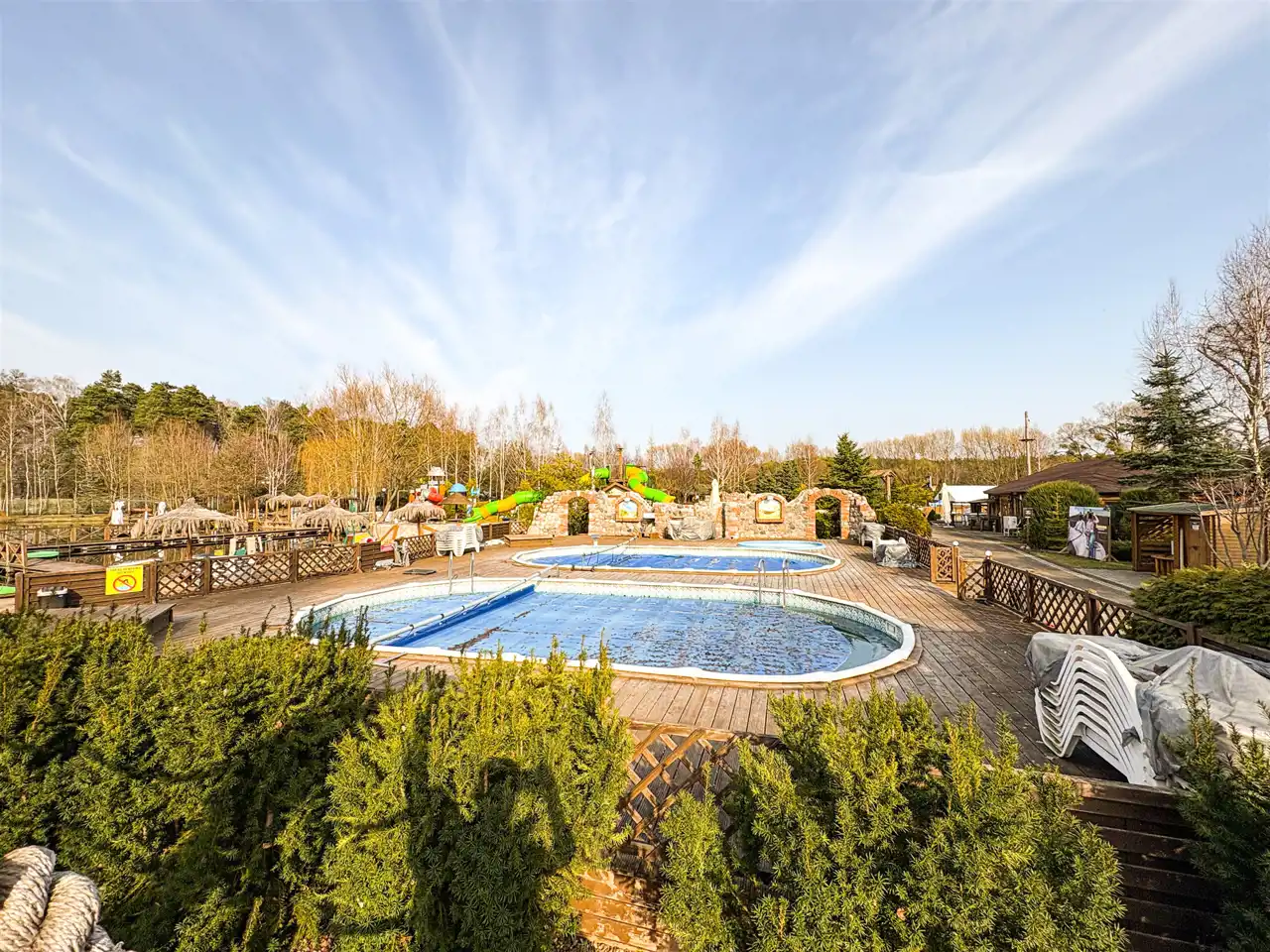 - Strefa Basenowa - 5 baseny z temperaturą wody ok. 26 stopni ze dwiema zjeżdżalniami tubowymi oraz dwiema dmuchanymi, jeden basen typu TROPICANA z temperaturą wody ok. 35 stopni, 3 brodziki ze zjeżdżalniami;