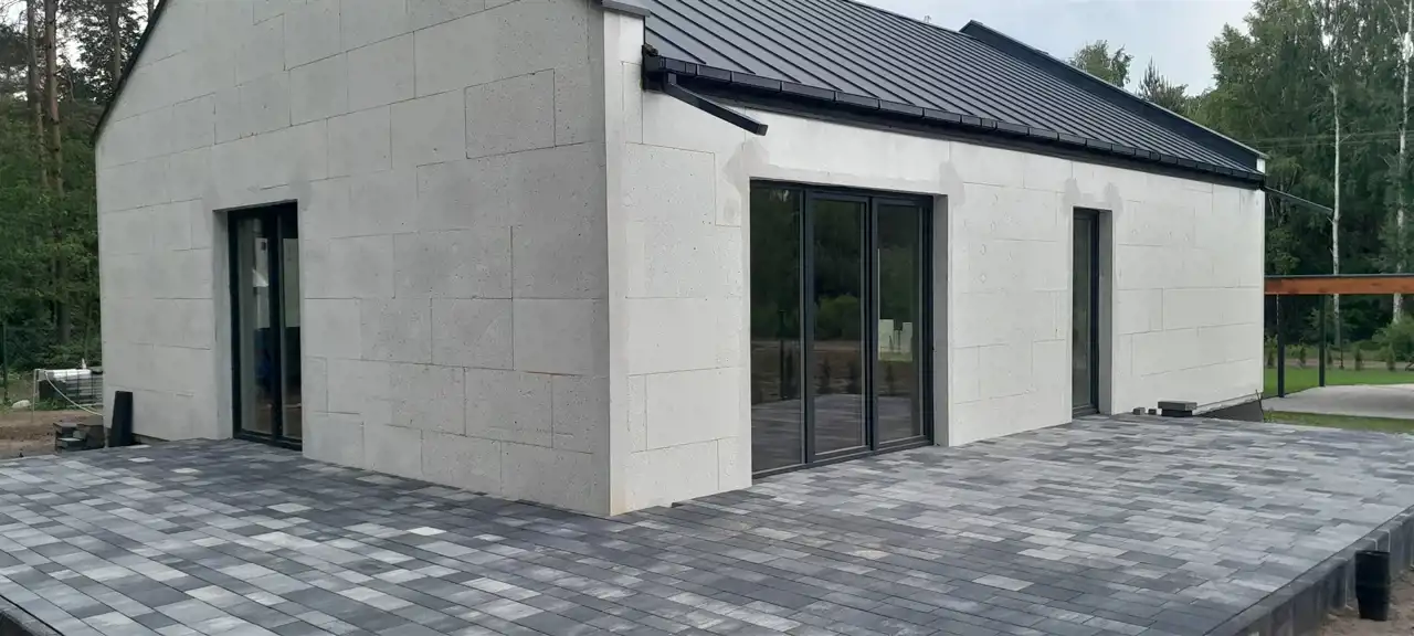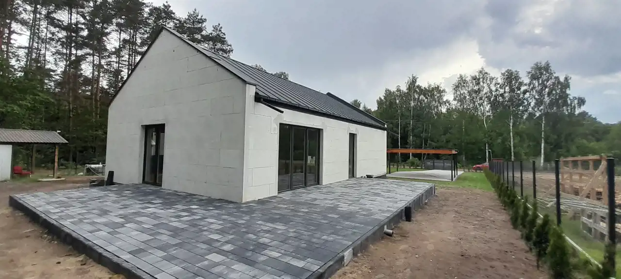 Dom składa się z 3 ustawnych sypialni, dużego salonu z kuchnią, łazienki, wc, kotłowni i przedpokoju. Przy domu został wybudowany bardzo ładny i duży taras obejmujący dwie ściany budynku.