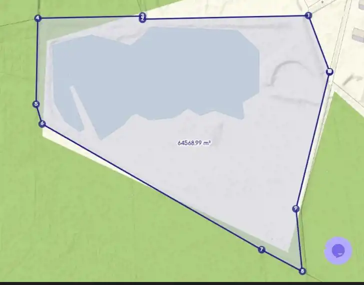 Działka o powierzchni około 65000 metrów kwadratowych ze stawem o powierzchni około 4ha. Nieogrodzona