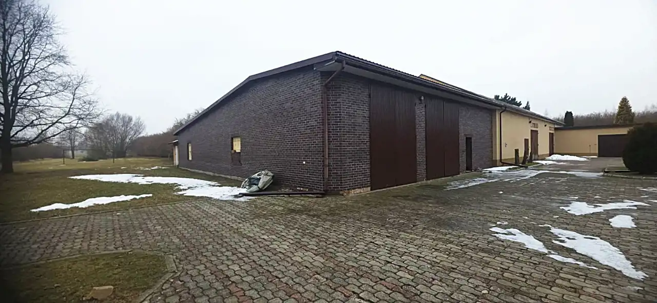 Hala o powierzchni 1000 m2 na cel produkcyjny/ magazynowy z placem manewrowym 500m wykonanym z kostki przemysłowej 8 cm.