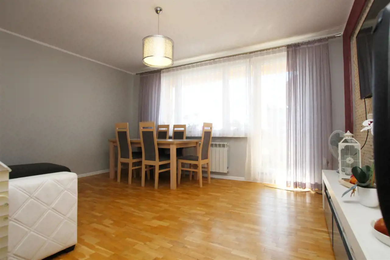 Mieszkanie usytuowane na I PIĘTRZE składające się z przestronnego salonu z wyjściem na balkon, kuchni, trzech pokoi, łazienki osobno z wc oraz przestronnego przedpokoju o łącznej powierzchni 77,8 m2.