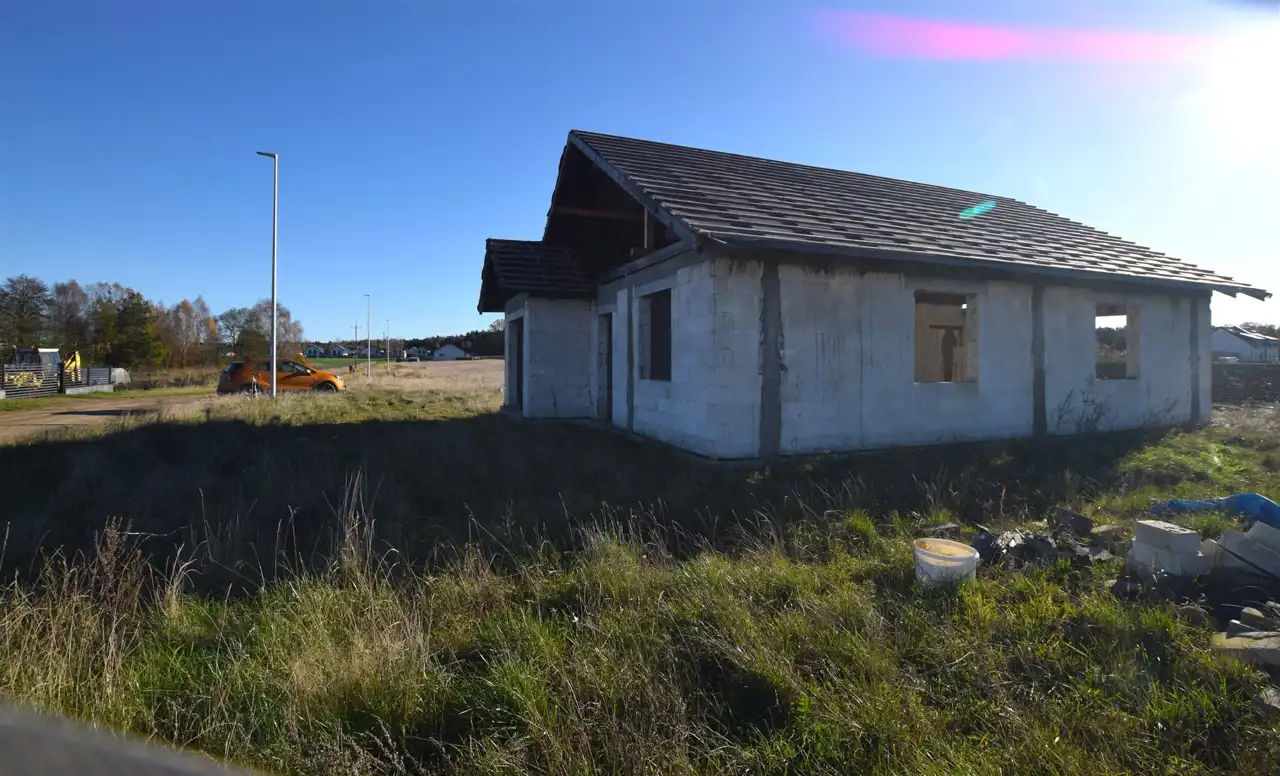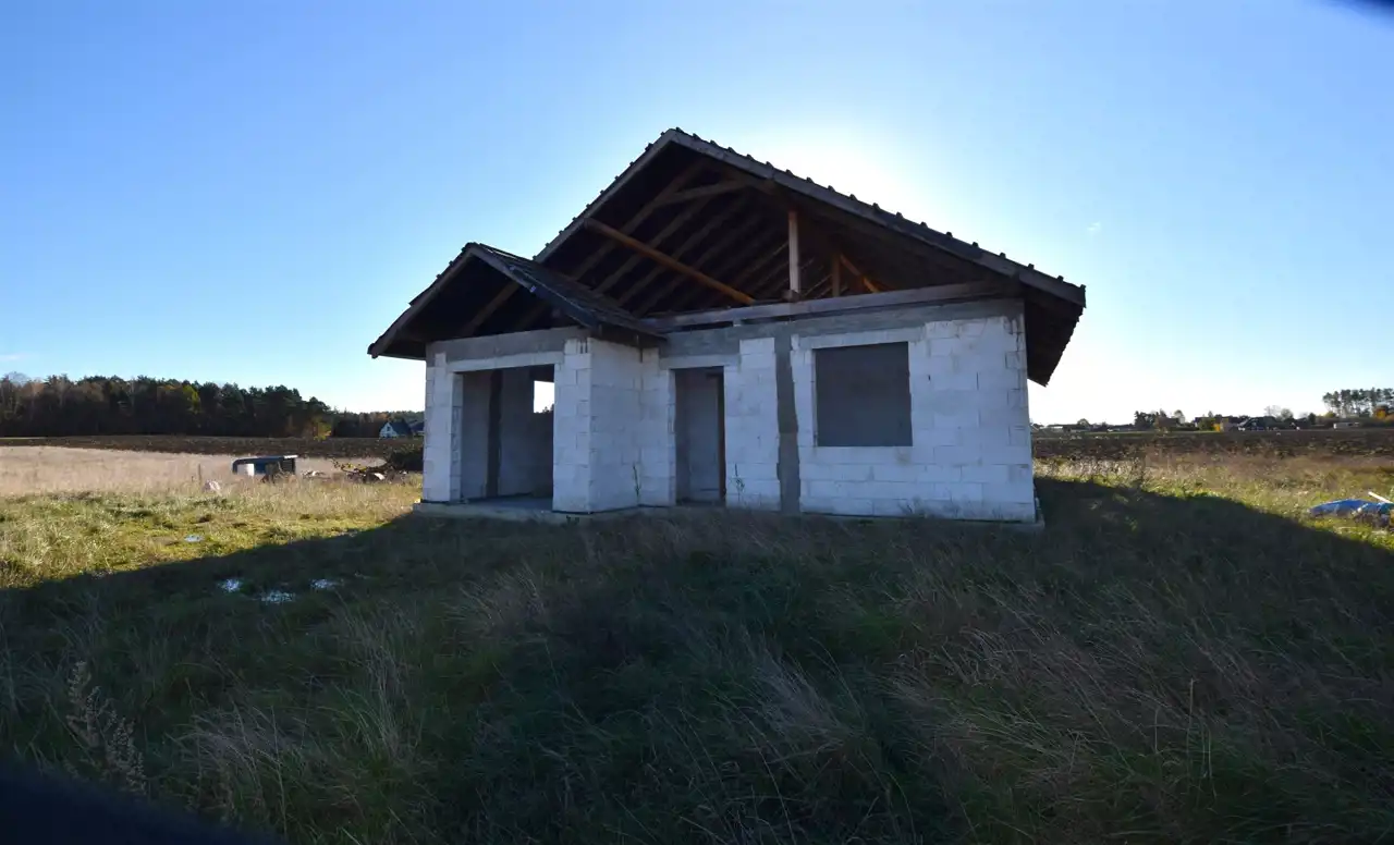 Jeden dom wybudowany w stanie surowym otwartym