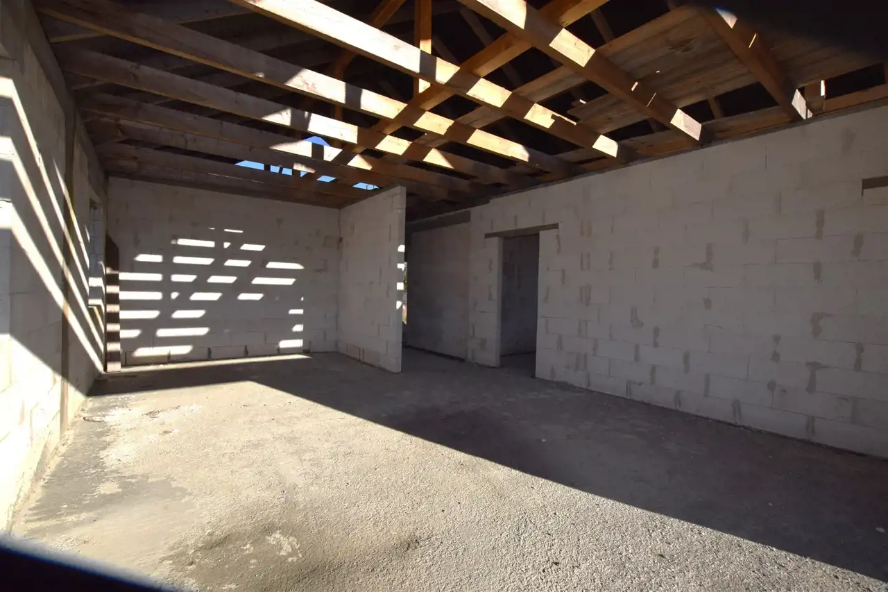 Na działce zaprojektowano dwa domy parterowe o powierzchni 104,91m² każdy. Jeden z domów został już wybudowany do stanu surowego otwartego.