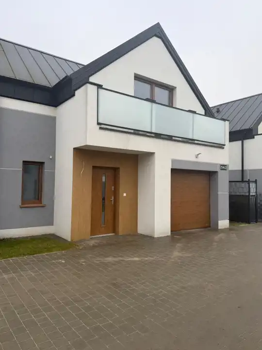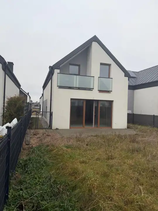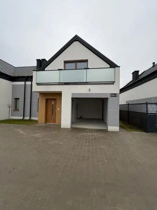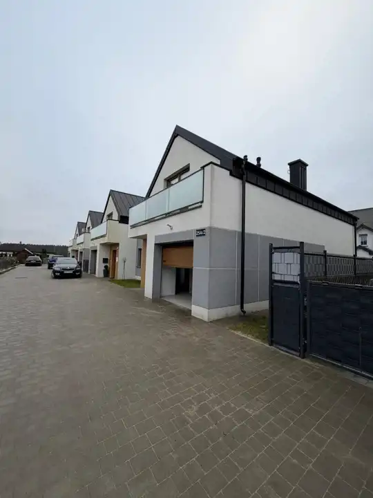 Posesja całkowicie ogrodzona, na zamkniętym kompleksie domów w zabudowie bliźniaczej z prawem wjazdu tylko dla właścicieli domów-dojazd wyłożony kostką brukową, wjazd przez bramę otwieraną na pilota.