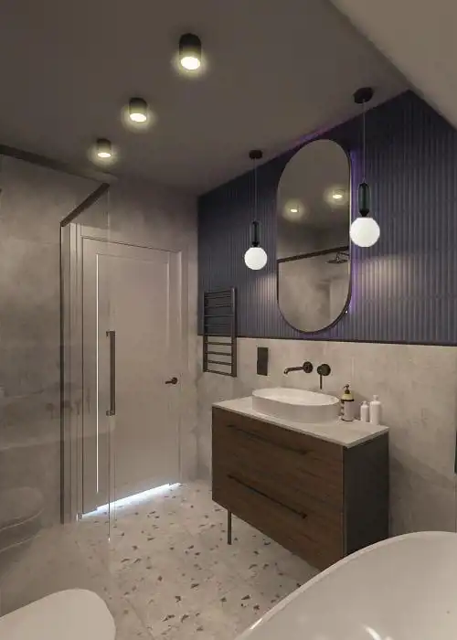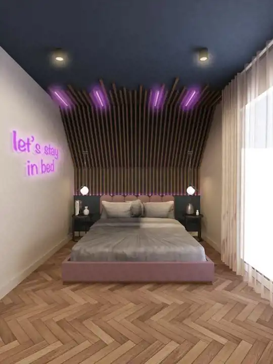 - duże pomieszczenie ze skosami i wejściem po rozkładanych schodach.