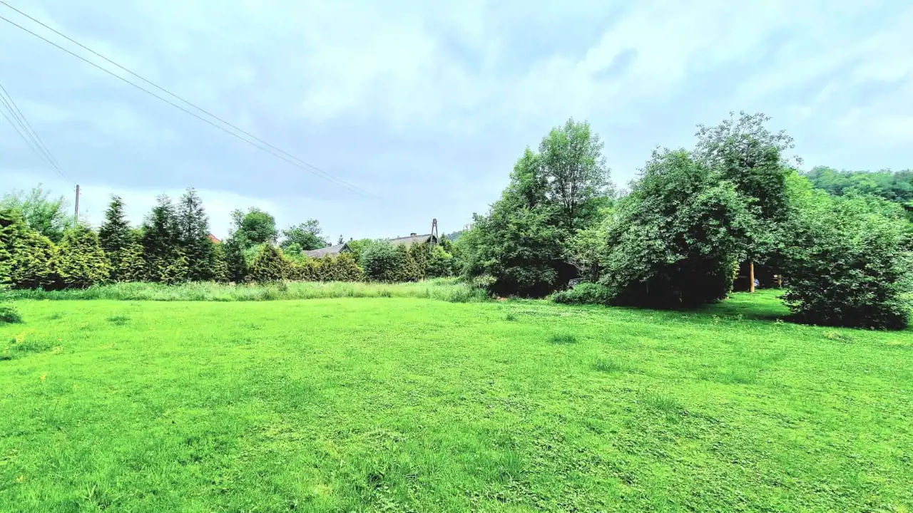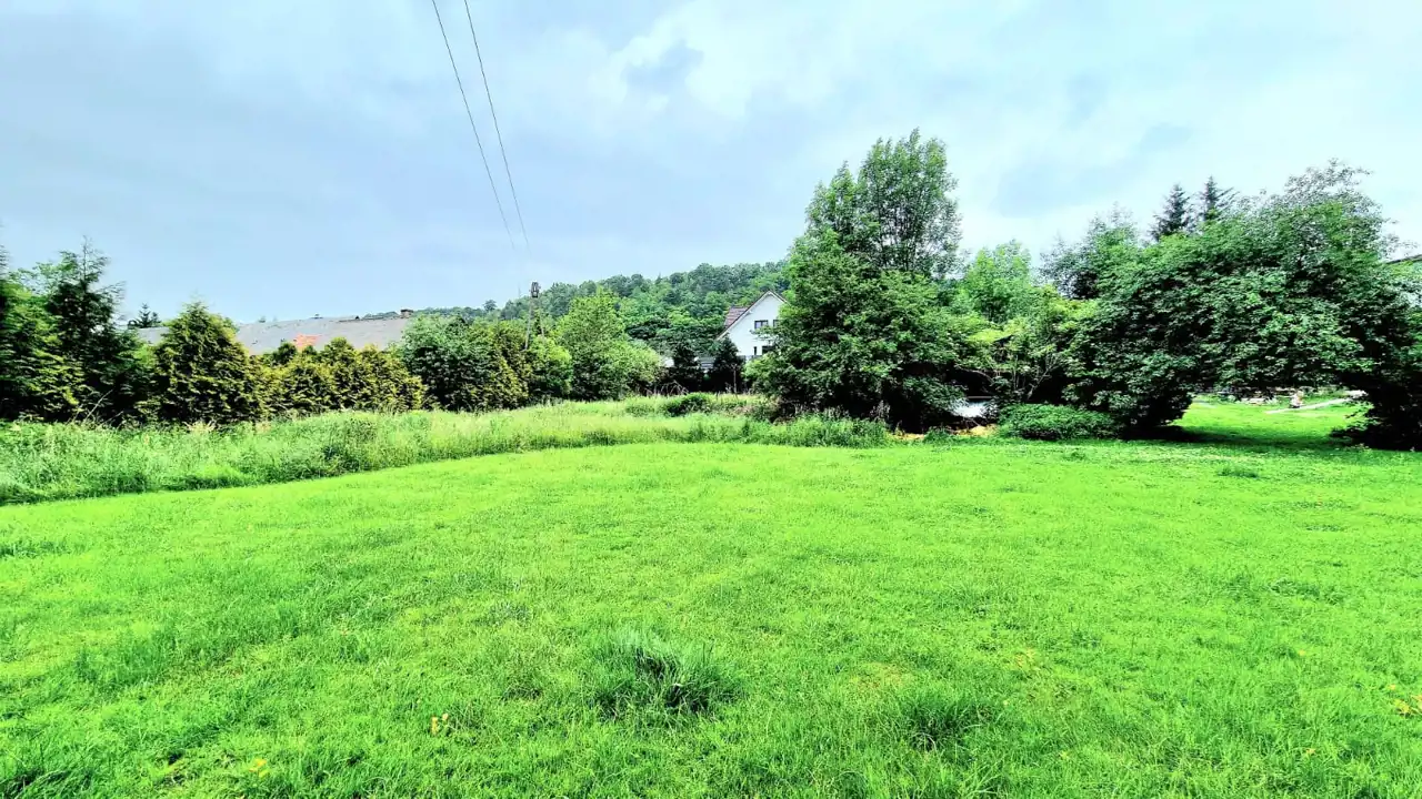 - Działka częściowo zagospodarowana, lekko nachylona, prostokąt
