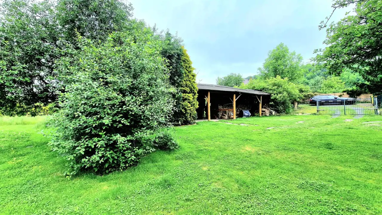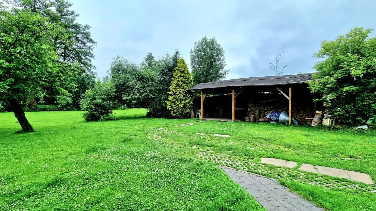 Na działce znajduje się murowany garaż oraz wiata drewniana widoczne na foto.