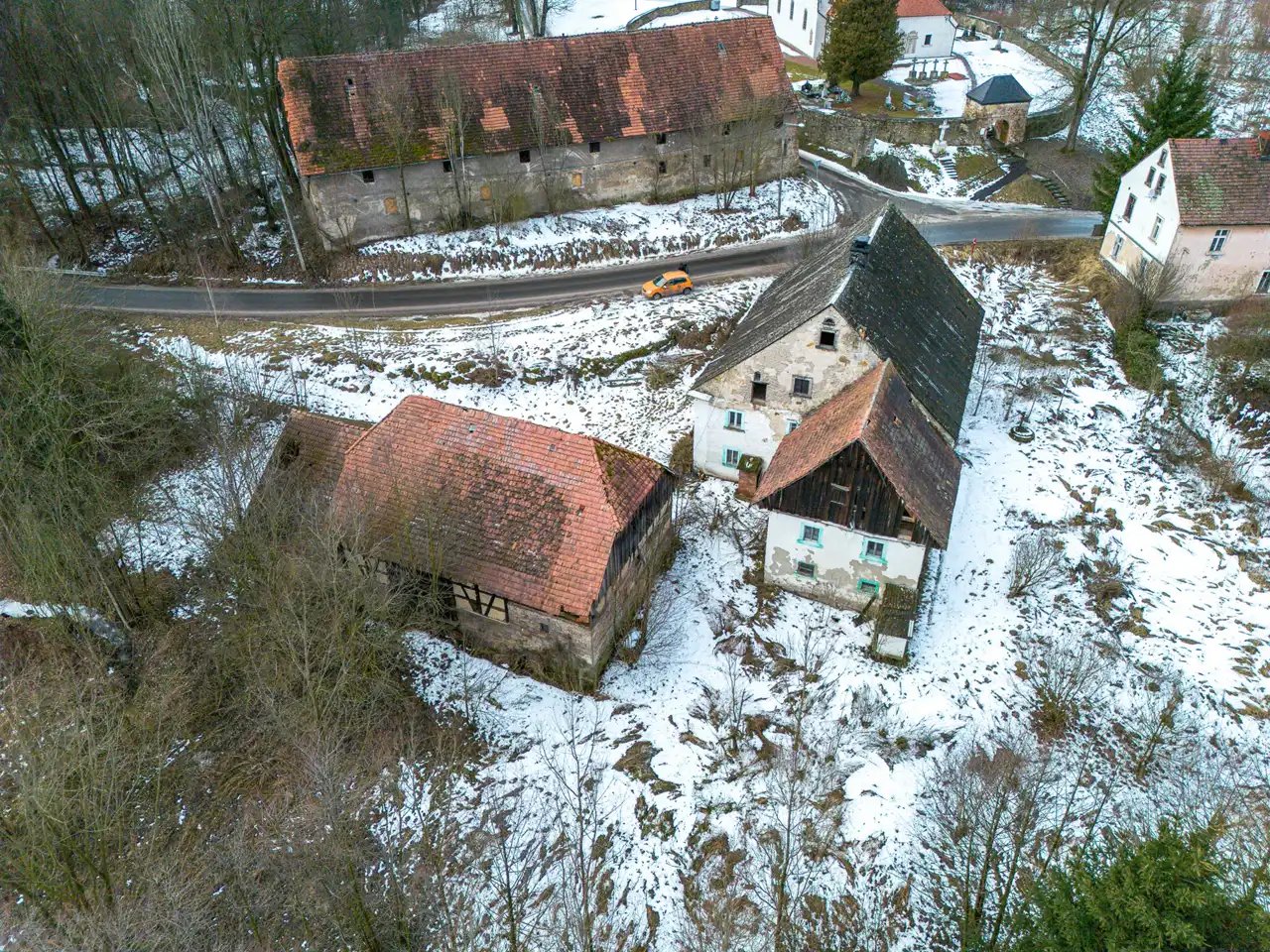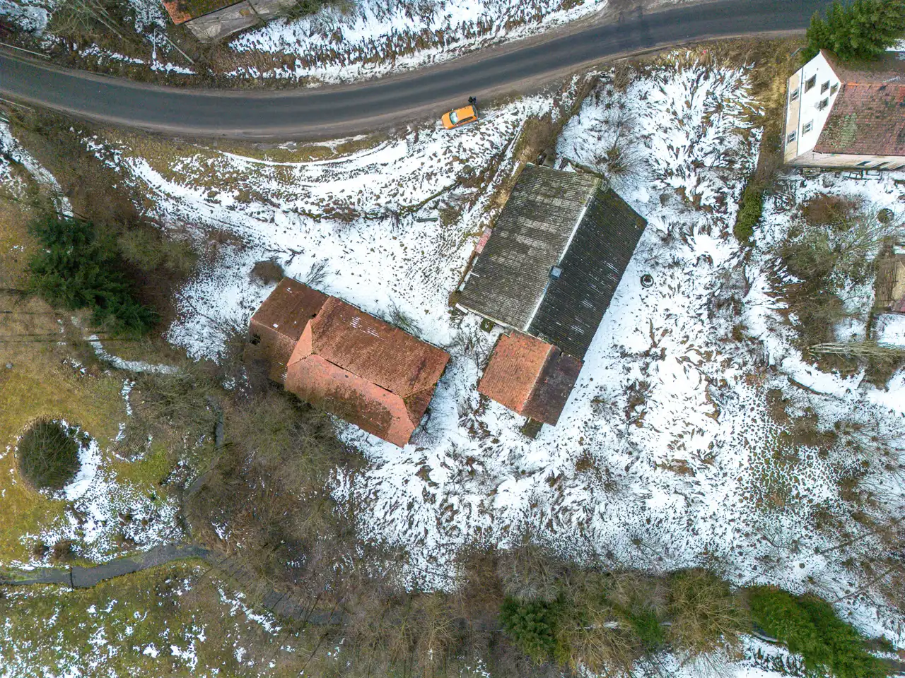 W ofercie dom, stodoła i inne budynki posadowione na działce o powierzchni 3600m2.