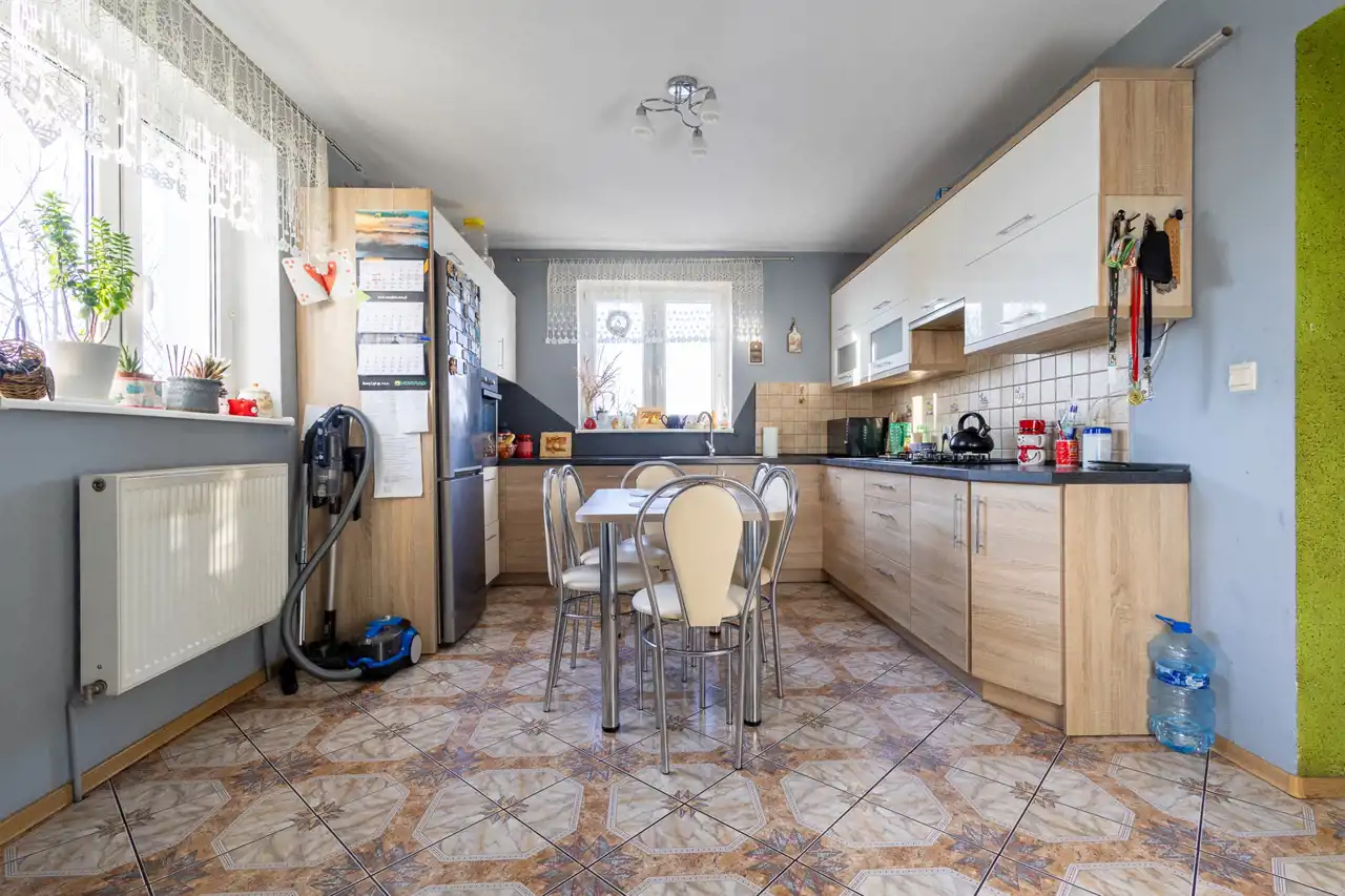 Obok budynku mieszkalnego znajduje pomieszczenia gospodarcze, idealne dla majsterkowicza.