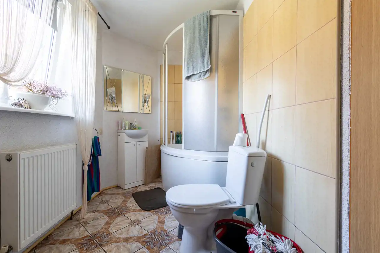 duża, jasna łazienka z wc o pow. 8,10 m2