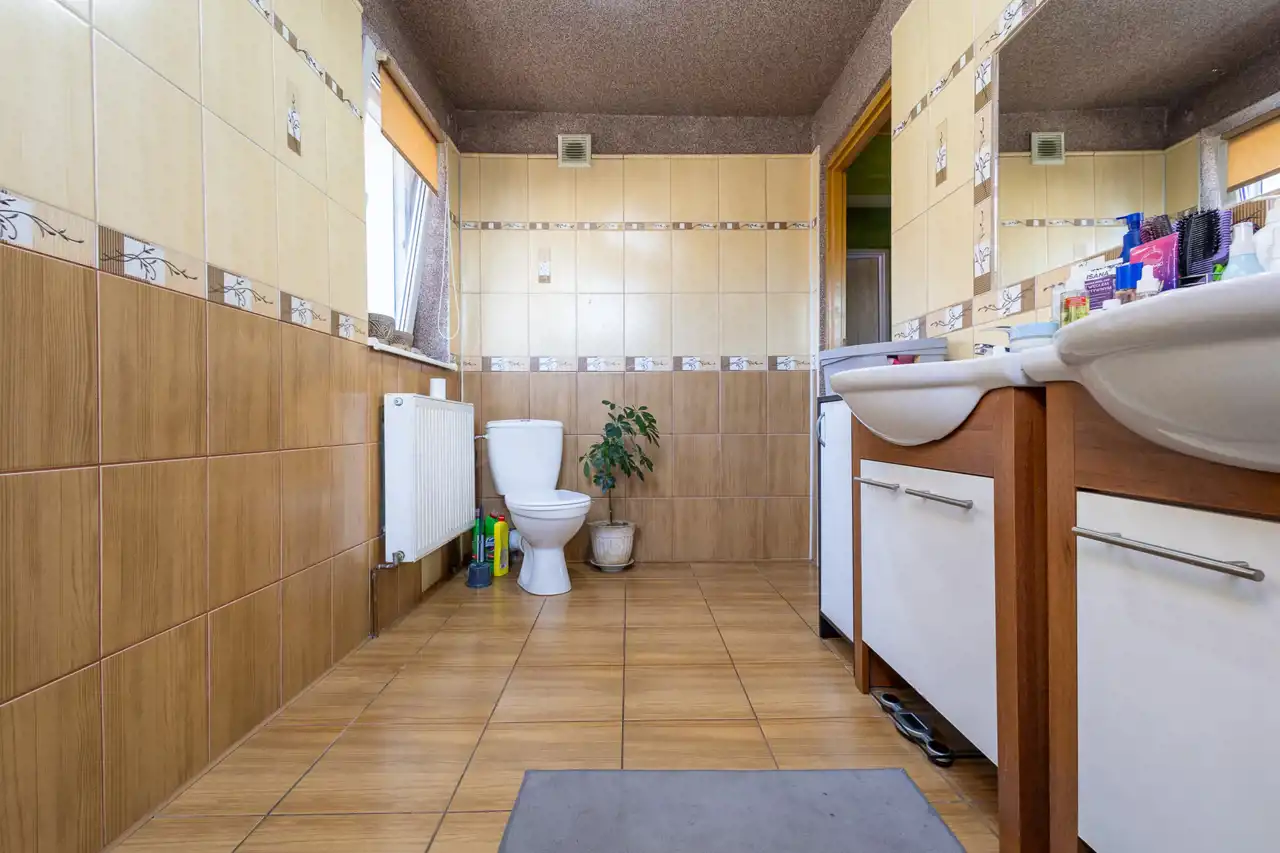Do domu podłączona jest woda miejska, prąd oraz własne szambo.