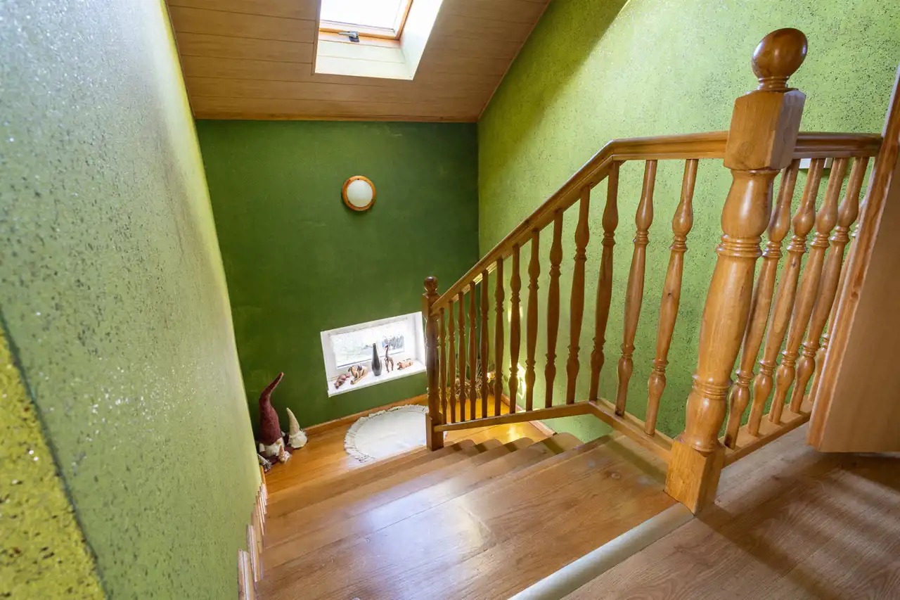 Drewnianymi, masywnymi schodami udajemy się na I piętro, gdzie mamy pomieszczenia: