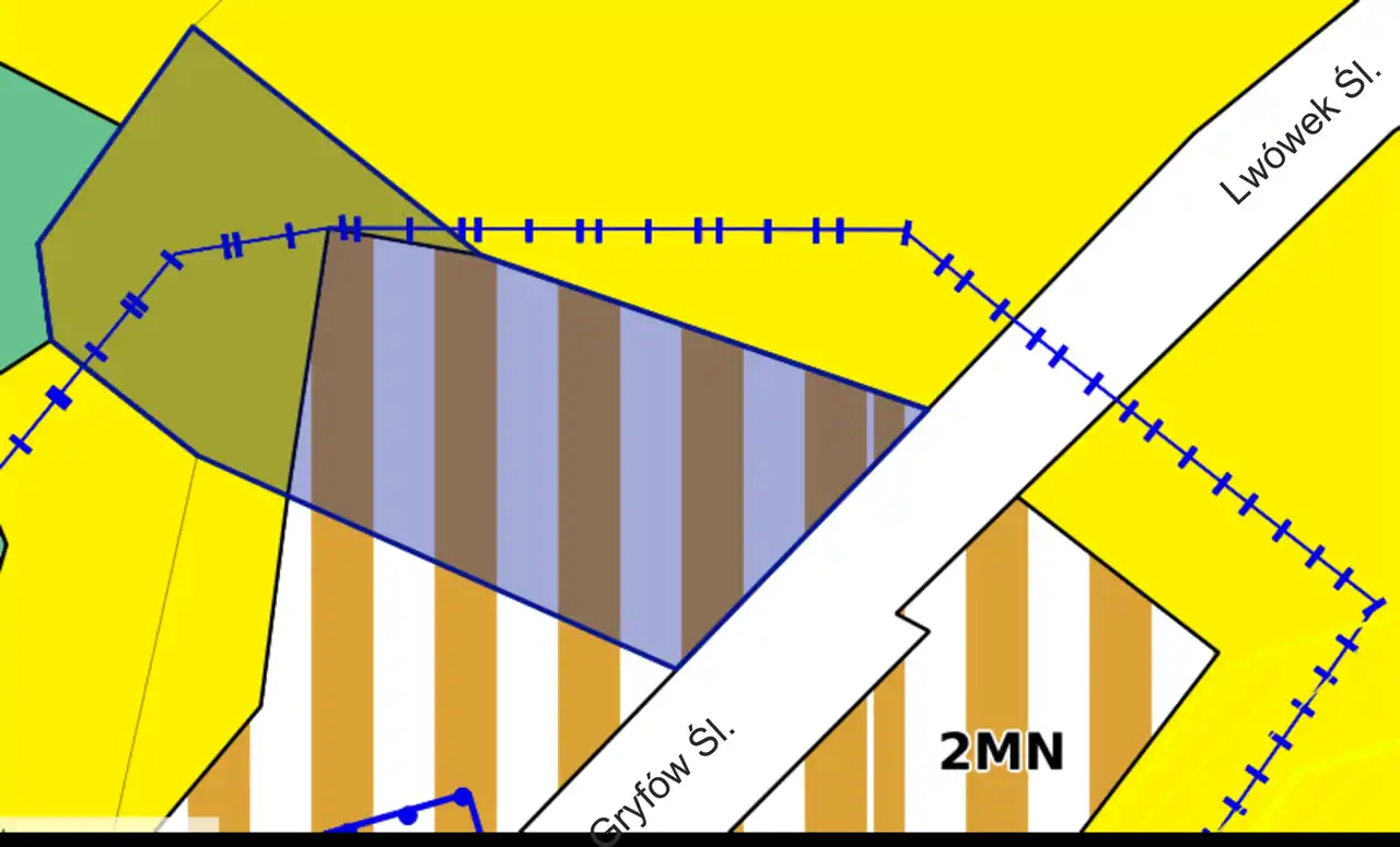 Działka nie ma pokrycia miejscowym planem zagospodarowania przestrzennego, ale z wypisu ze studium uwarunkowań i kierunków zagospodarowania przestrzennego Gminy Lwówek Śląski wynika, że: