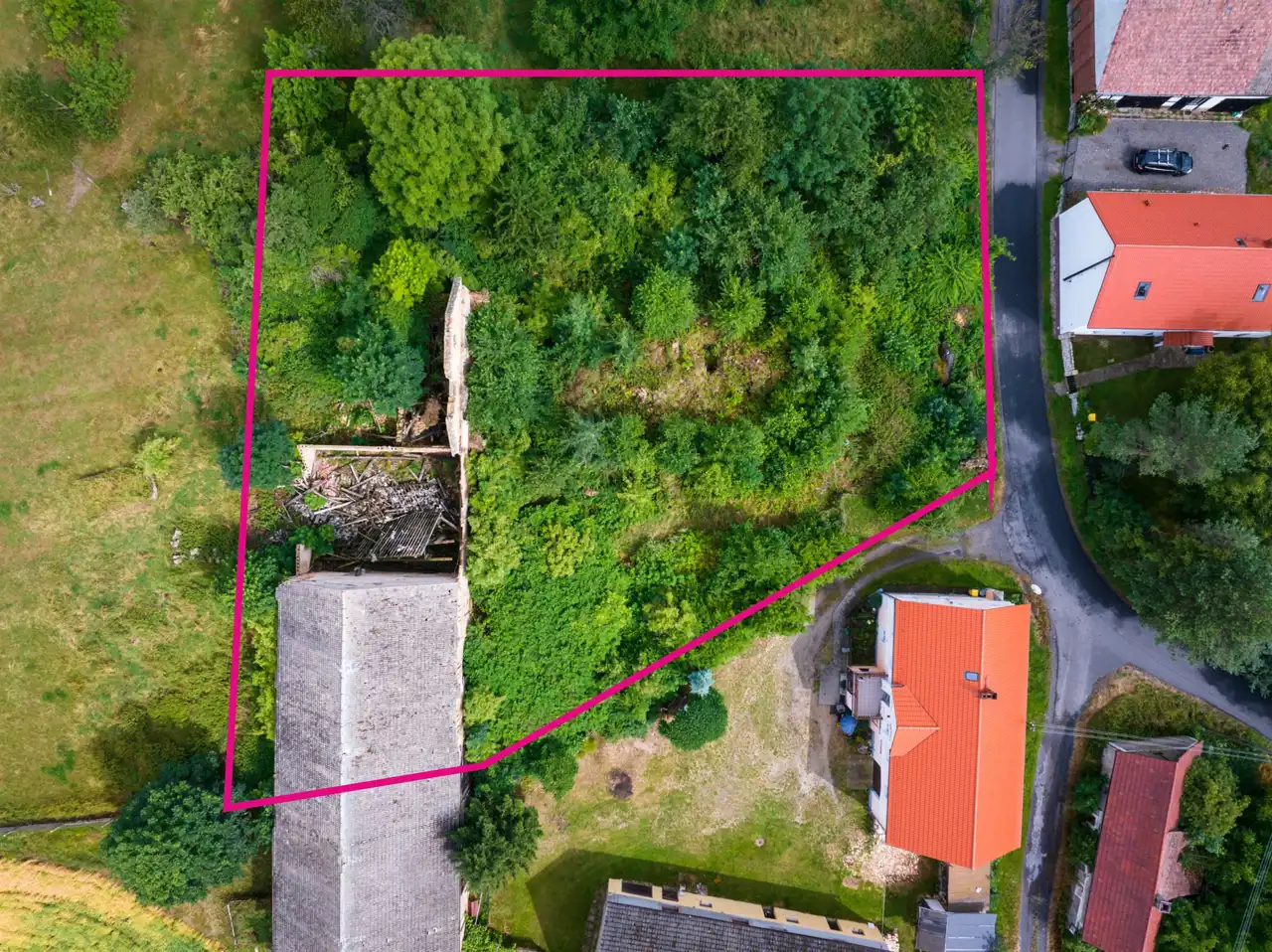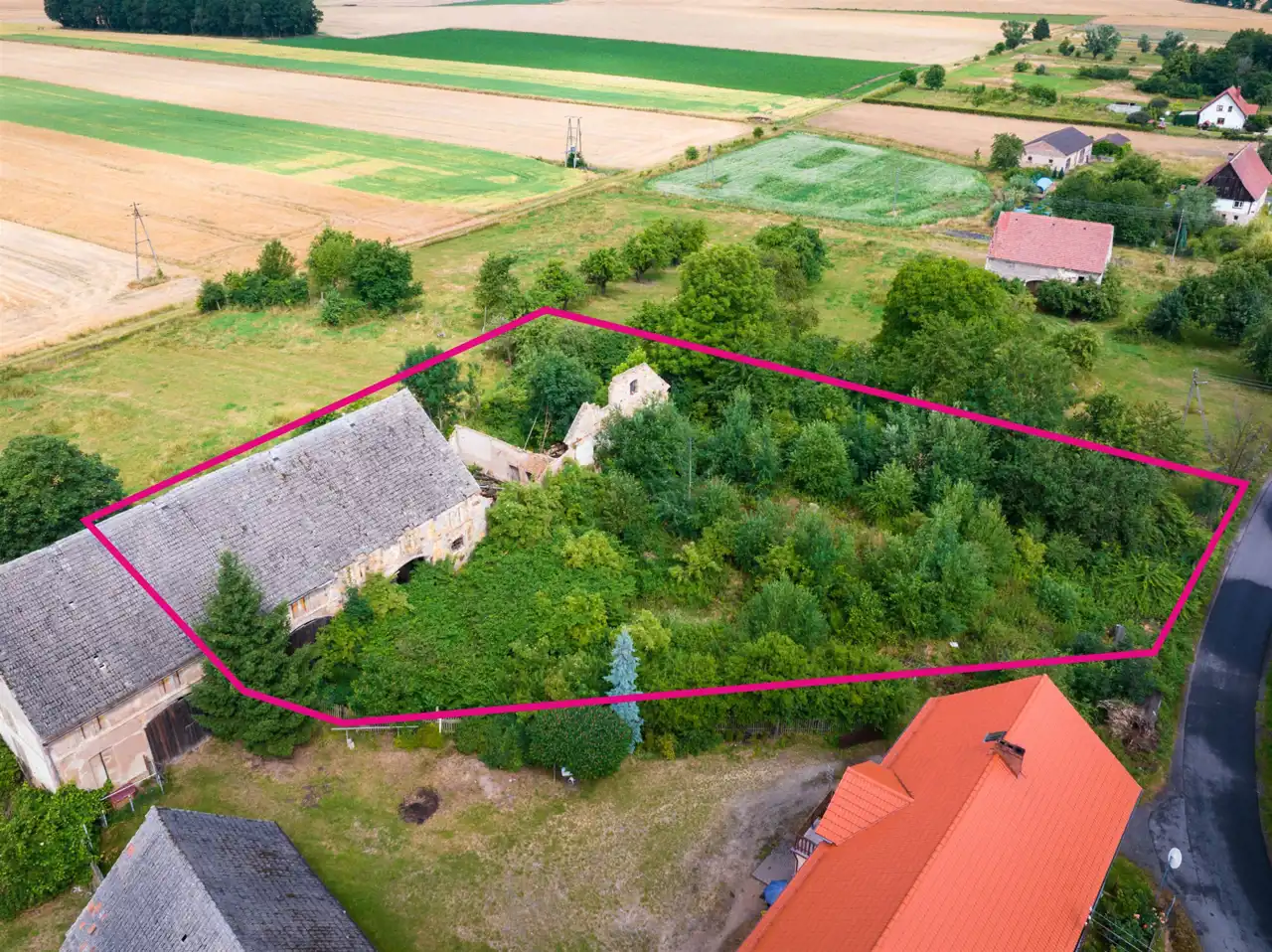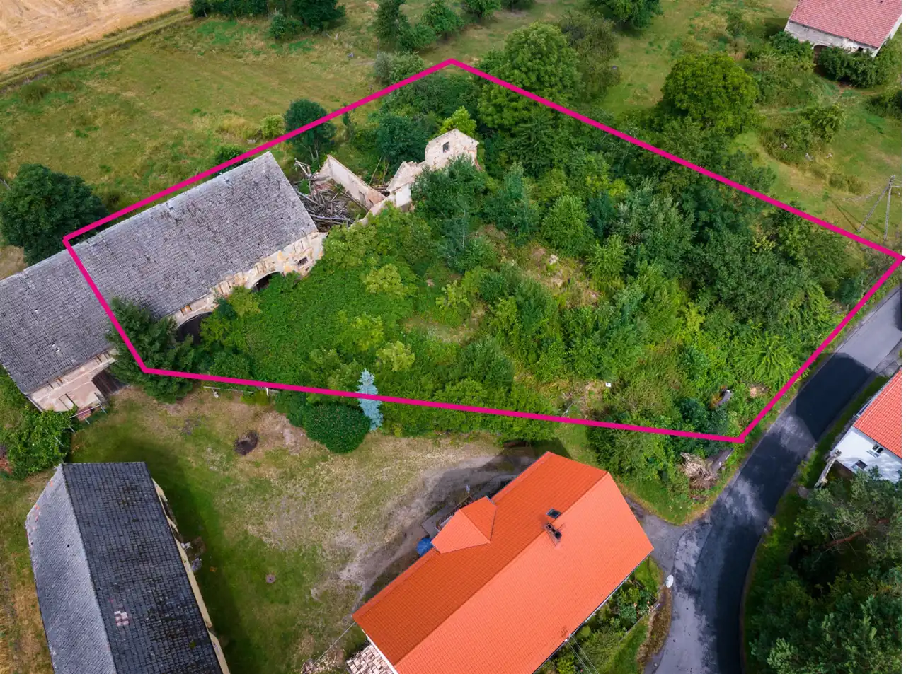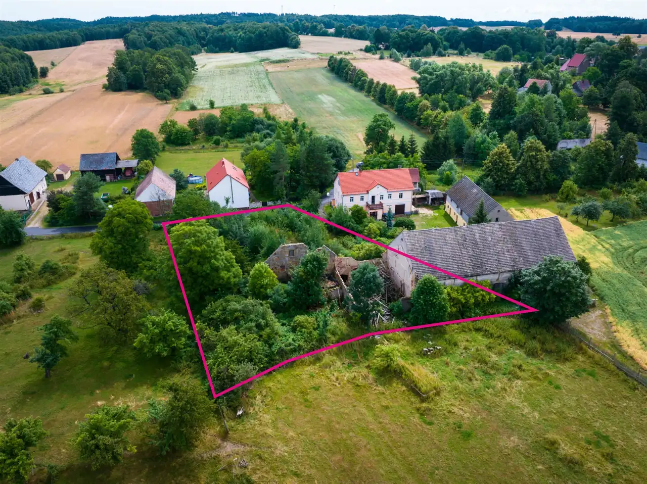 Działka 316/211 o powierzchni 0,2380 ha zabudowana budynkiem mieszkalnym - w ruinie- z częścią gospodarczą.