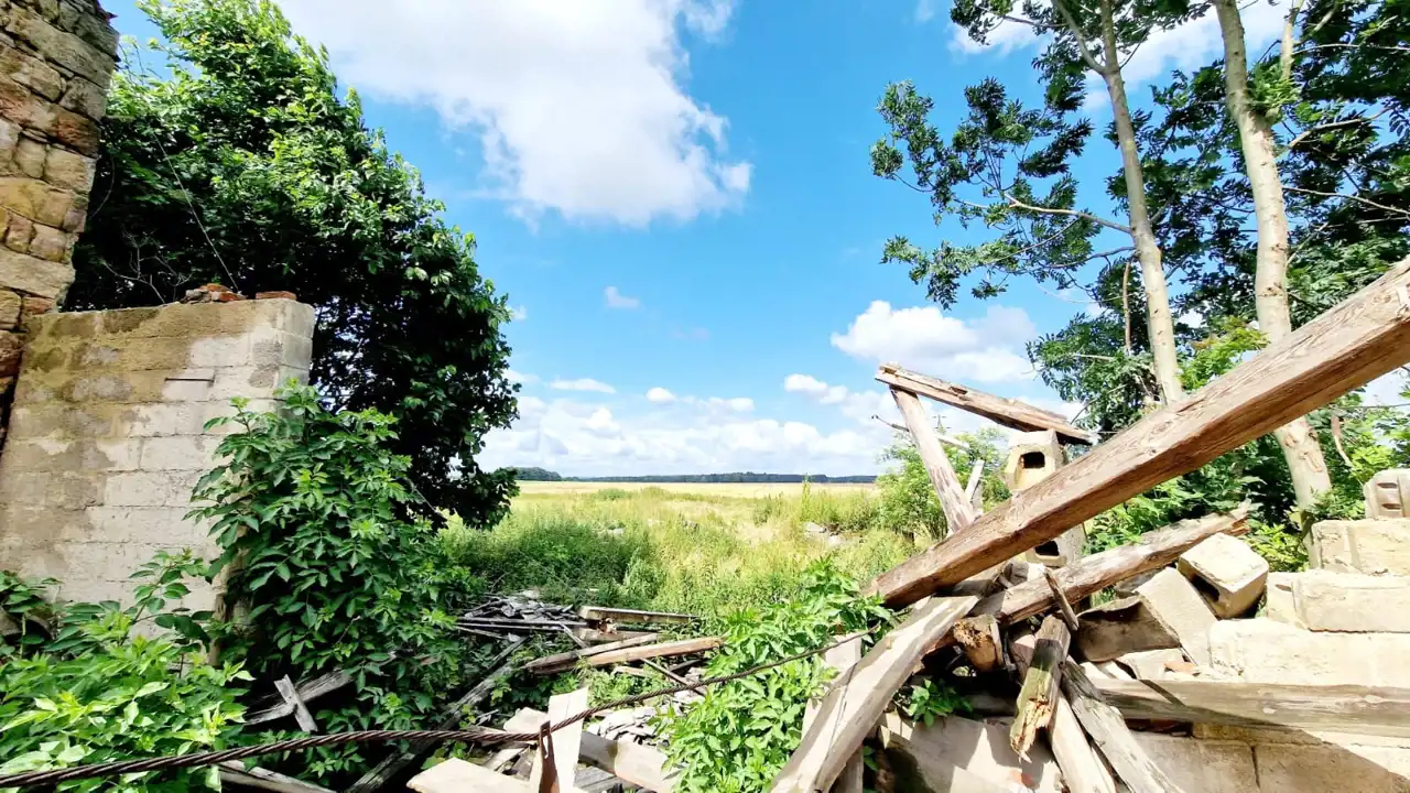 Na działce ogrom piaskowca, cegieł, drena, które można wykorzystać do własnych celów.