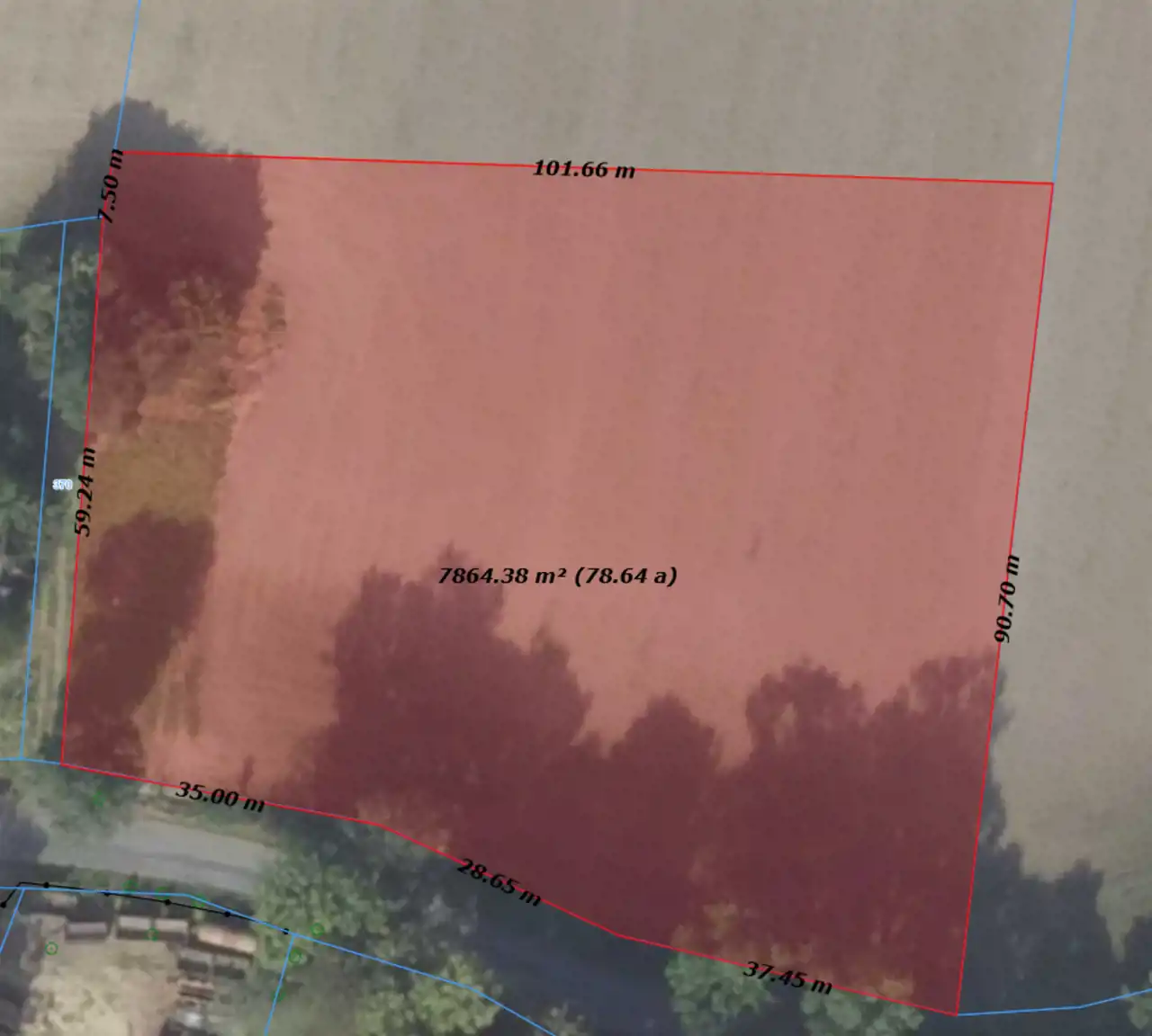 Powierzchnia działki: ok. 7800 m2, częściowo zalesiona.