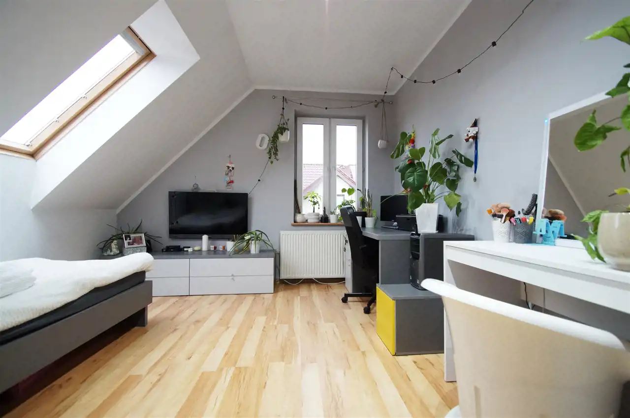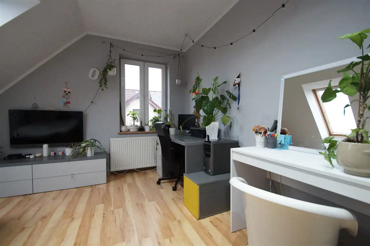 Nieruchomość gruntowa o powierzchni ok. 900m2 ogrodzona i pięknie zagospodarowana. Na posesji jest jeszcze dodatkowy budynek gospodarczy o powierzchni całkowitej 101,54m2, wolnostojący przeznaczony na dwa samochody. Budynek może być przeznaczony na działalność gospodarczą typu warsztat samochodowy, stolarski itp.