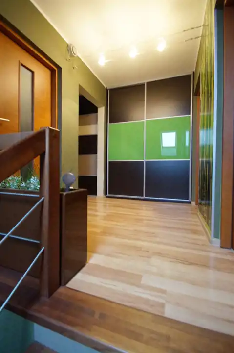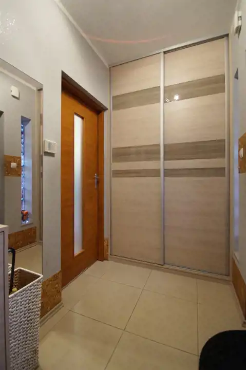 Nowoczesna zabudowa kuchenna z wysokiej jakości sprzętem AGD (płyta indukcyjna, piekarnik, zmywarka, chłodziarko zamrażarka, okap). Stałe zabudowy w kuchni, pokojach i wiatrołapie wykonane na indywidualne zamówienie u wiodącego producenta.