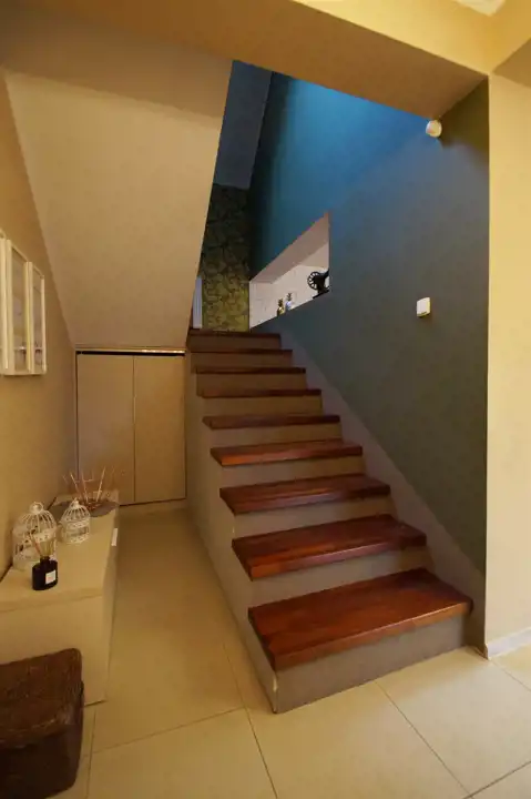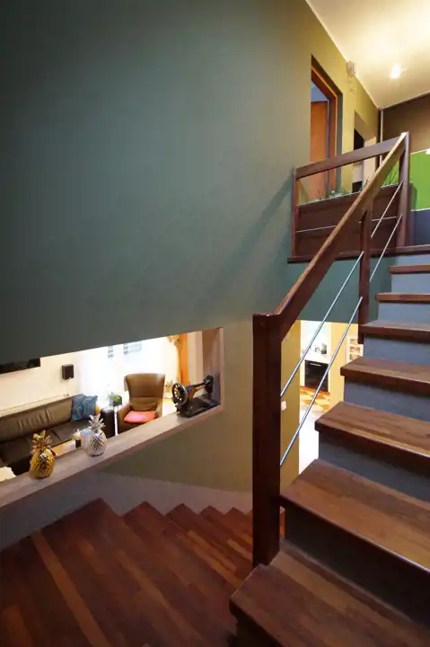 Podzielony jest na dwie strefy. Strefa dzienna usytuowana na parterze, składa się z:
