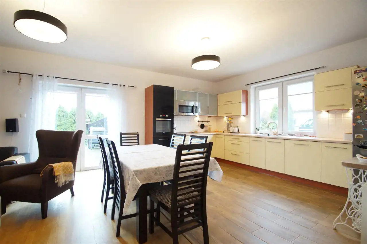 Ten gotowy do zamieszkania dom, wykończony został z dbałością o każdy szczegół.