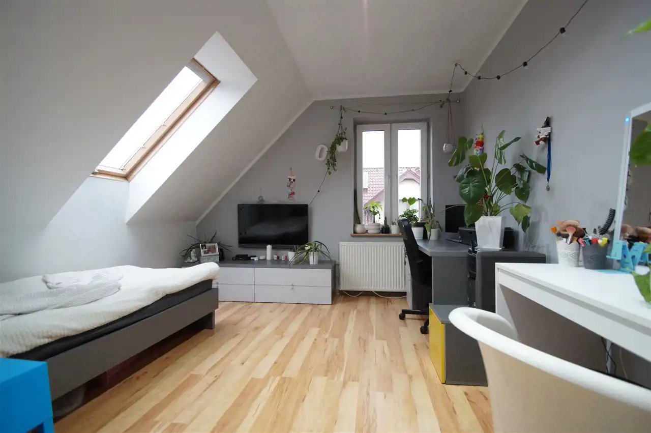 Nieruchomość gruntowa o powierzchni ok. 900m2 ogrodzona i pięknie zagospodarowana. Na posesji jest jeszcze dodatkowy budynek gospodarczy o powierzchni całkowitej 101,54m2, wolnostojący przeznaczony na dwa samochody. Budynek może być przeznaczony na działalność gospodarczą typu warsztat samochodowy, stolarski itp.