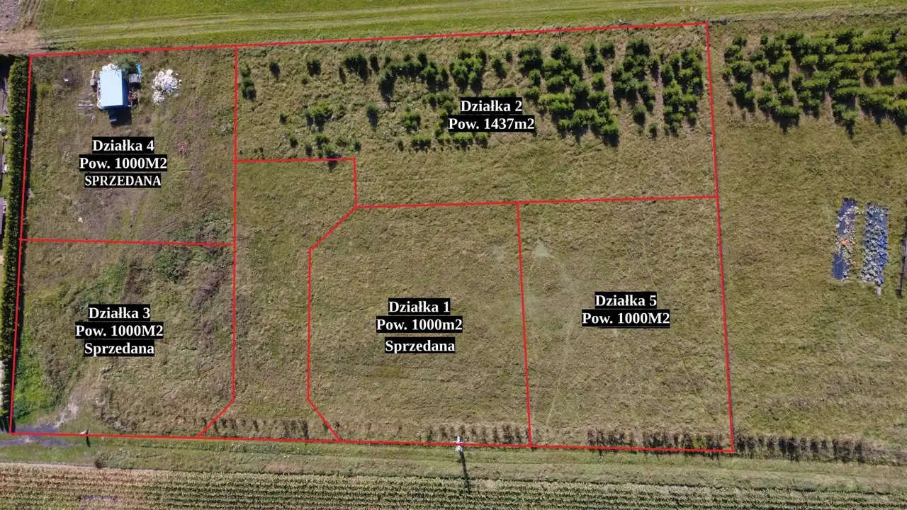 - Działka 4: 1000 m², SPRZEDANA