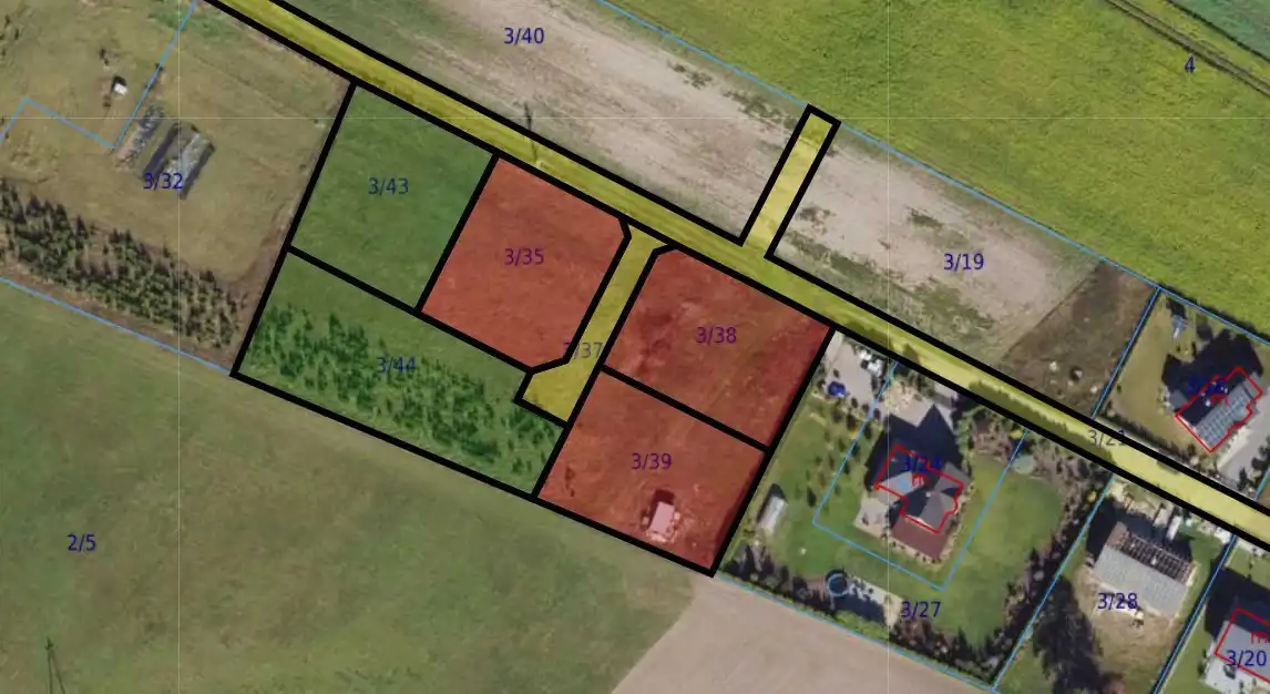 - Działka 3: 1000 m², SPRZEDANA