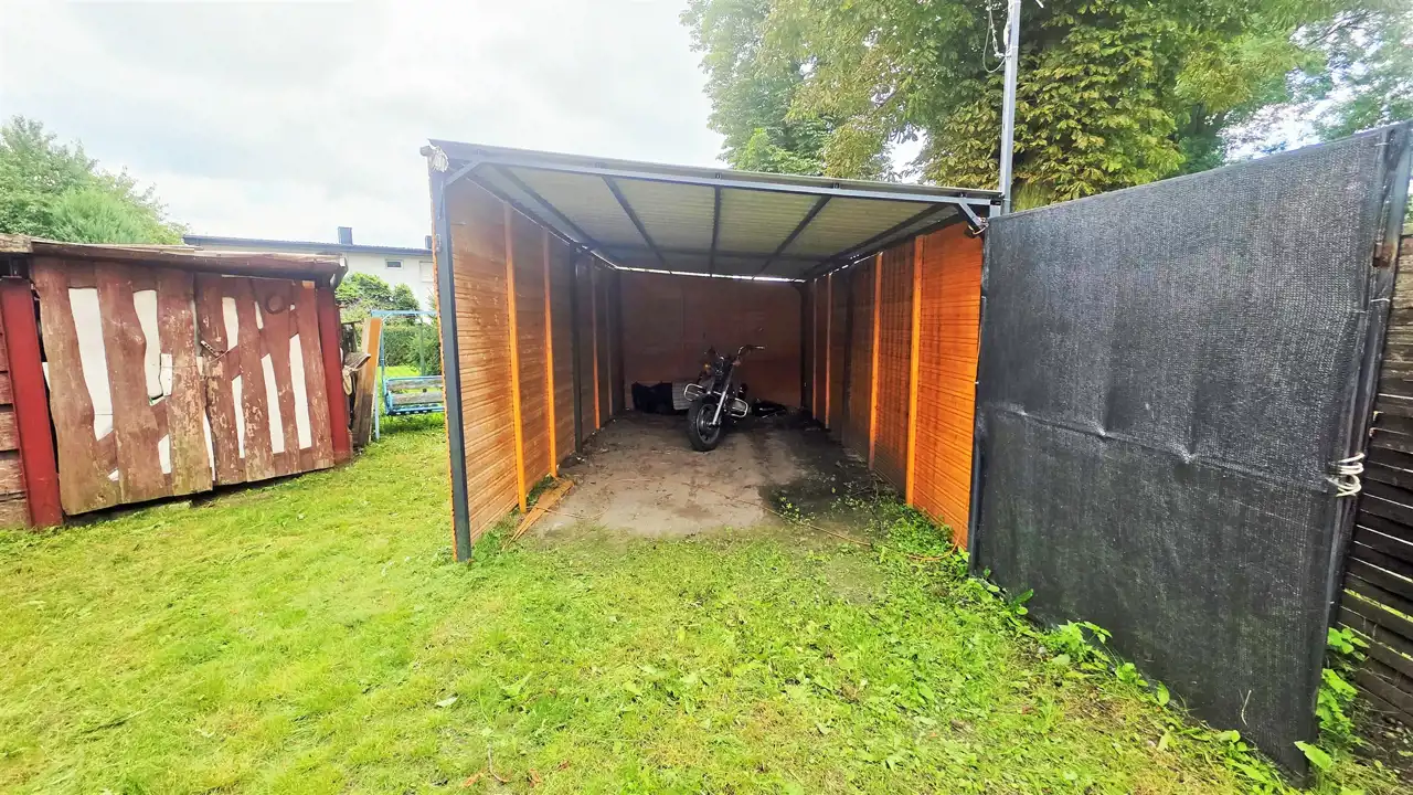 Do mieszkania przynależy również wiata parkingowa na ogrodzonym podjeździe oraz mały ogródek przed domem