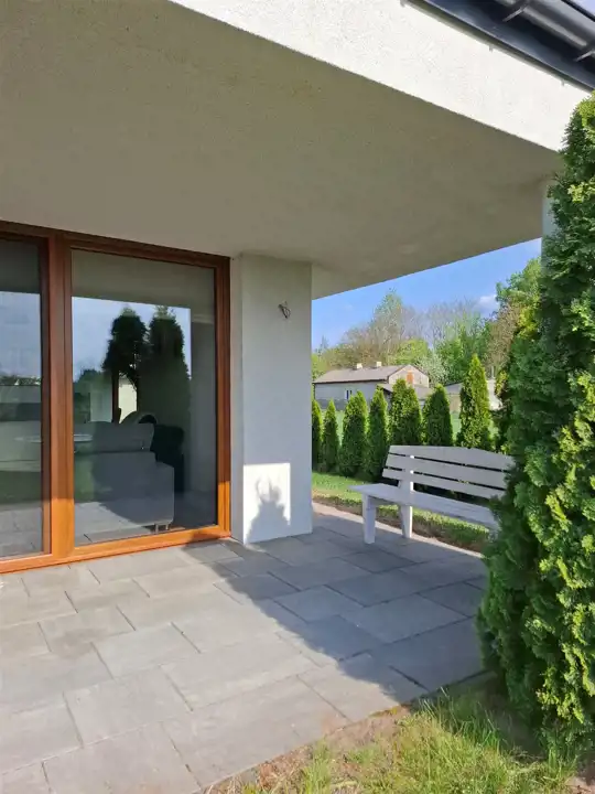 Na wyposażeniu domu znajduje się system alarmowy oraz kamery co zapewnia bezpieczeństwo mieszkańcom.