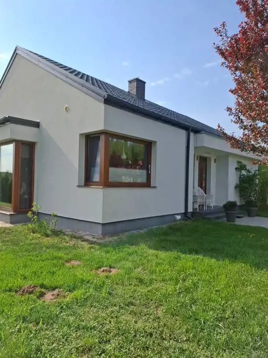 Dom ocieplony, zewnętrzna elewacja jest pokryta tynkiem, zaś dach pokryty blachodachówką ,zapewniając niskie koszty utrzymania.