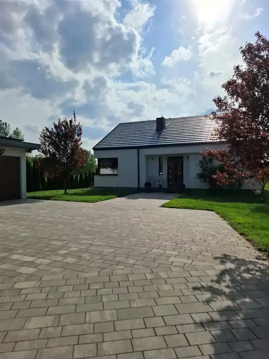 Front działki wyłożony został kostką brukową.