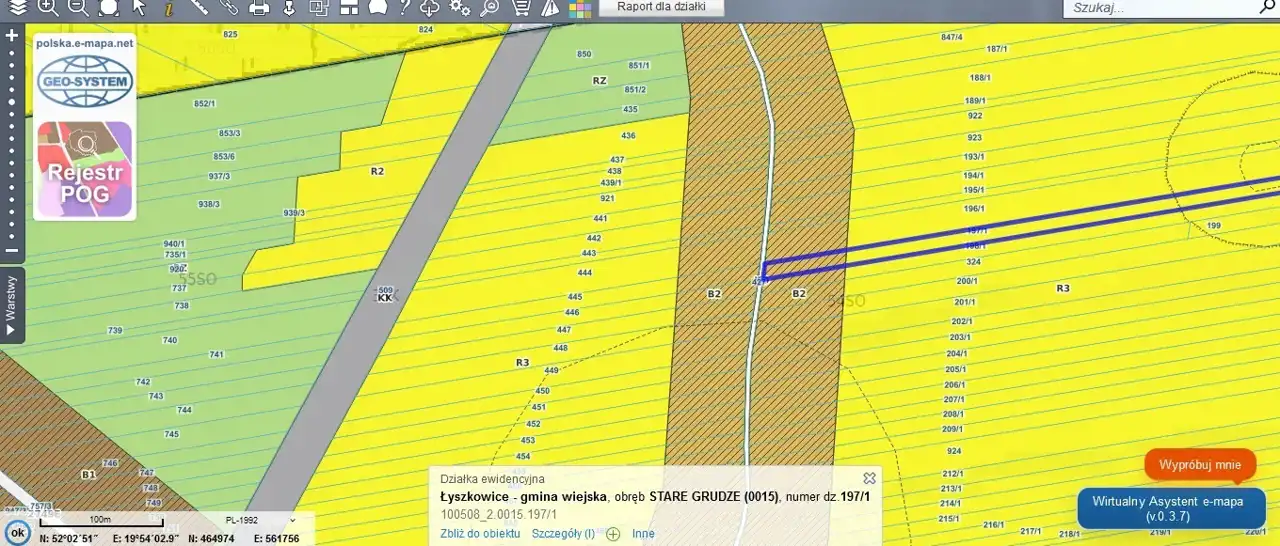 Działki położone w pow. łowickim, gm. Łyszkowice, Stare Grudze obręb 15, o nr: