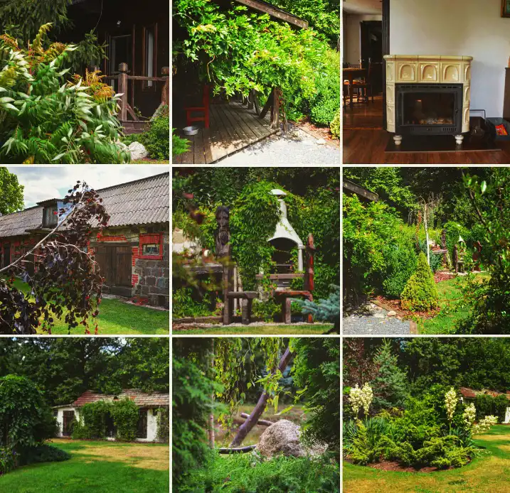 Otoczenie: Nieruchomość położona jest na działce o powierzchni 4,8 ha, która jest prawdziwym rajem dla miłośników natury. Wokół domu rozciąga się rozległy teren zielony, gdzie można delektować się ciszą i spokojem nad strumieniem, organizując ogniska lub grille. Za łąką znajduje się piękny sad oraz łąka, a dalej rozpościera się las, który jest pełen grzybów, malin i jeżyn. W ogrodzie kwitną kolorowe rabaty przez całe lato, co dodaje uroku temu miejscu. Na terenie posesji znajduje się również staw pokryty nenufarami, gdzie można obserwować lokalną faunę, w tym czaplę.