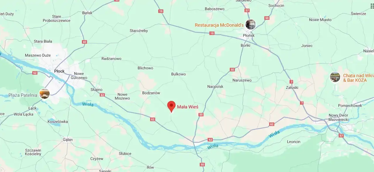 Sprzedam działkę budowlaną o pow. 5154 m2 we wsi Mała Wieś w powiecie płockim.