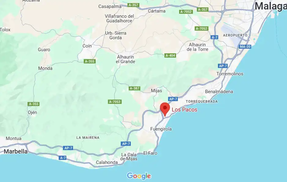 Miejscowość Los Pacos leży w prowincji Malaga nad Morzem Śródziemnym - Wybrzeże Costa del Sol (vide mapa).