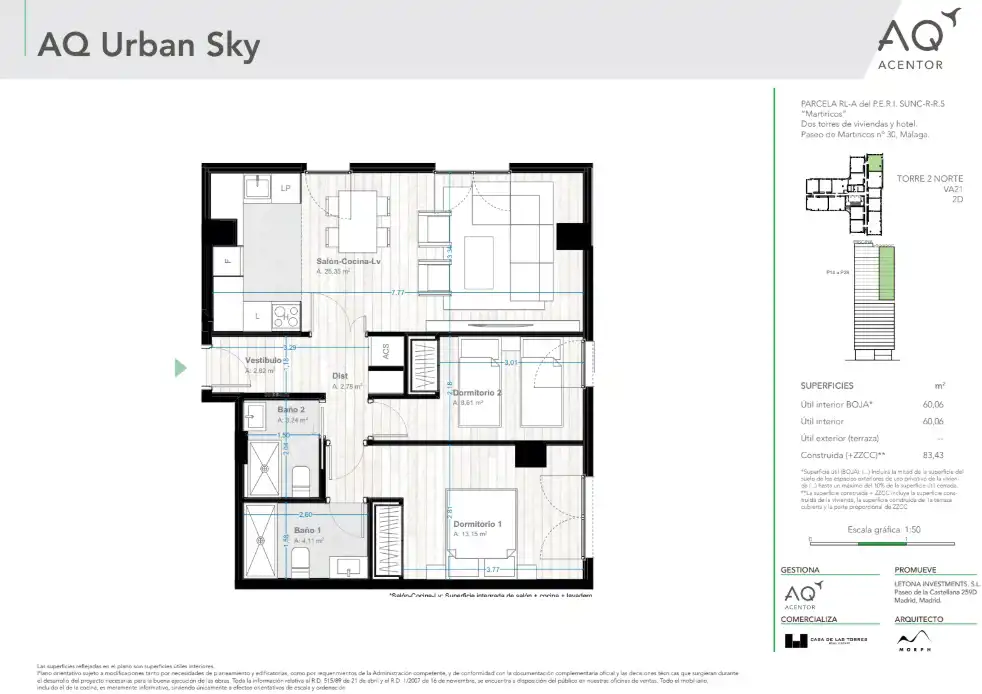 Kompleks oferuje 252 apartamenty z 1-4 sypialniami oraz część wspólną, w tym strefę coworkingową, pralnię, basen na dachu z barem i kino. Panoramiczny widok z 30. piętra sprawia, że jest to wyjątkowy projekt na wybrzeżu Costa del Sol.