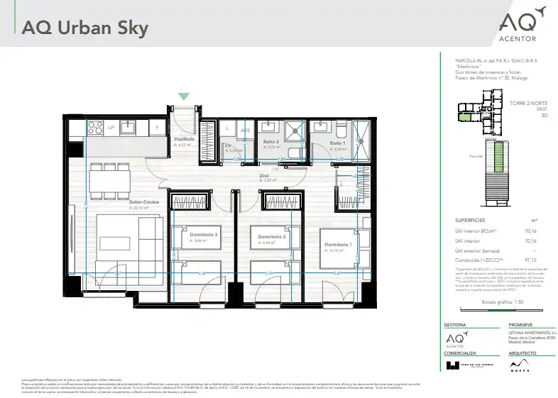 Kompleks oferuje 252 apartamenty z 1-4 sypialniami oraz część wspólną, w tym strefę coworkingową, pralnię, basen na dachu z barem i kino. Panoramiczny widok z 30. piętra sprawia, że jest to wyjątkowy projekt na wybrzeżu Costa del Sol.