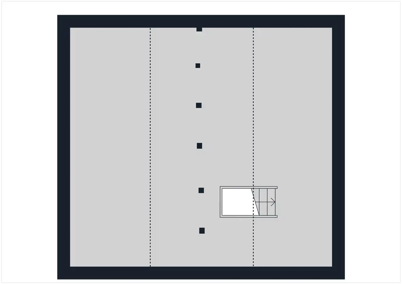 - wiatrołap, łazienka, komunikacja, salon z kuchnią i miejscem na kominek, garaż