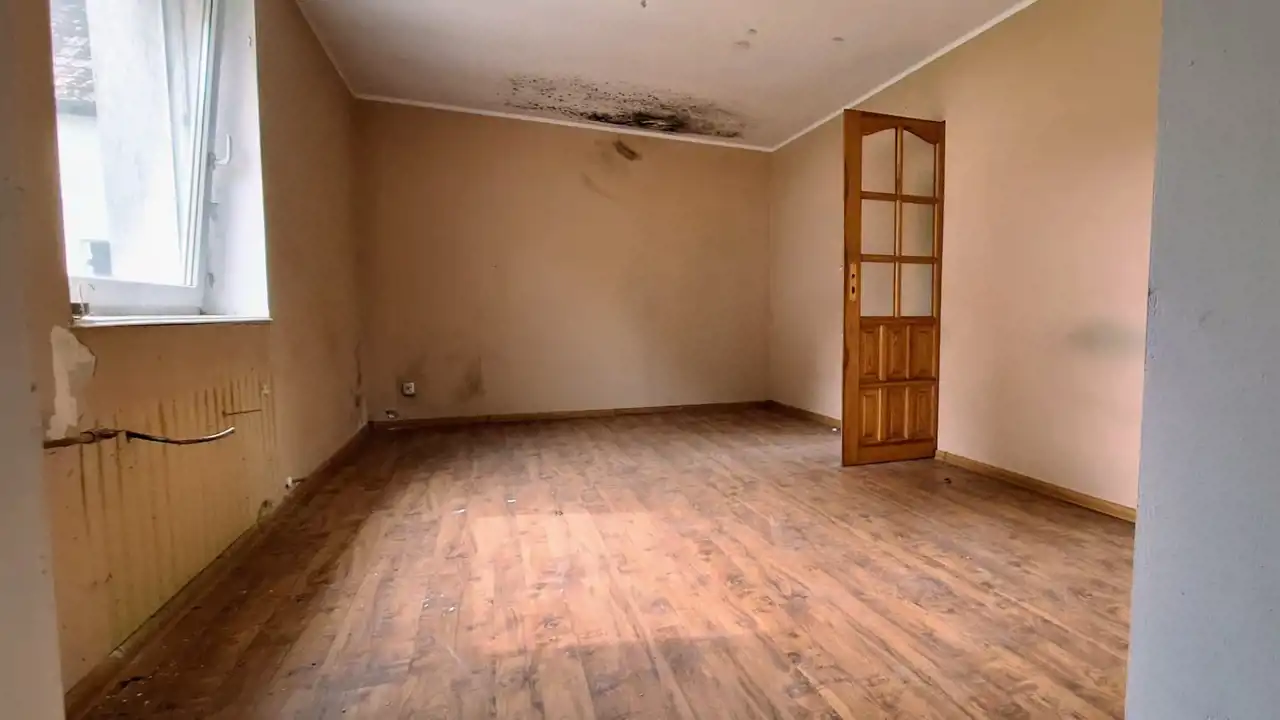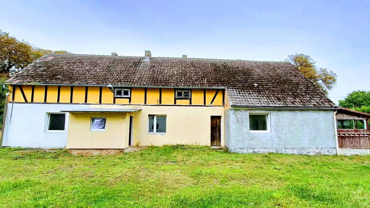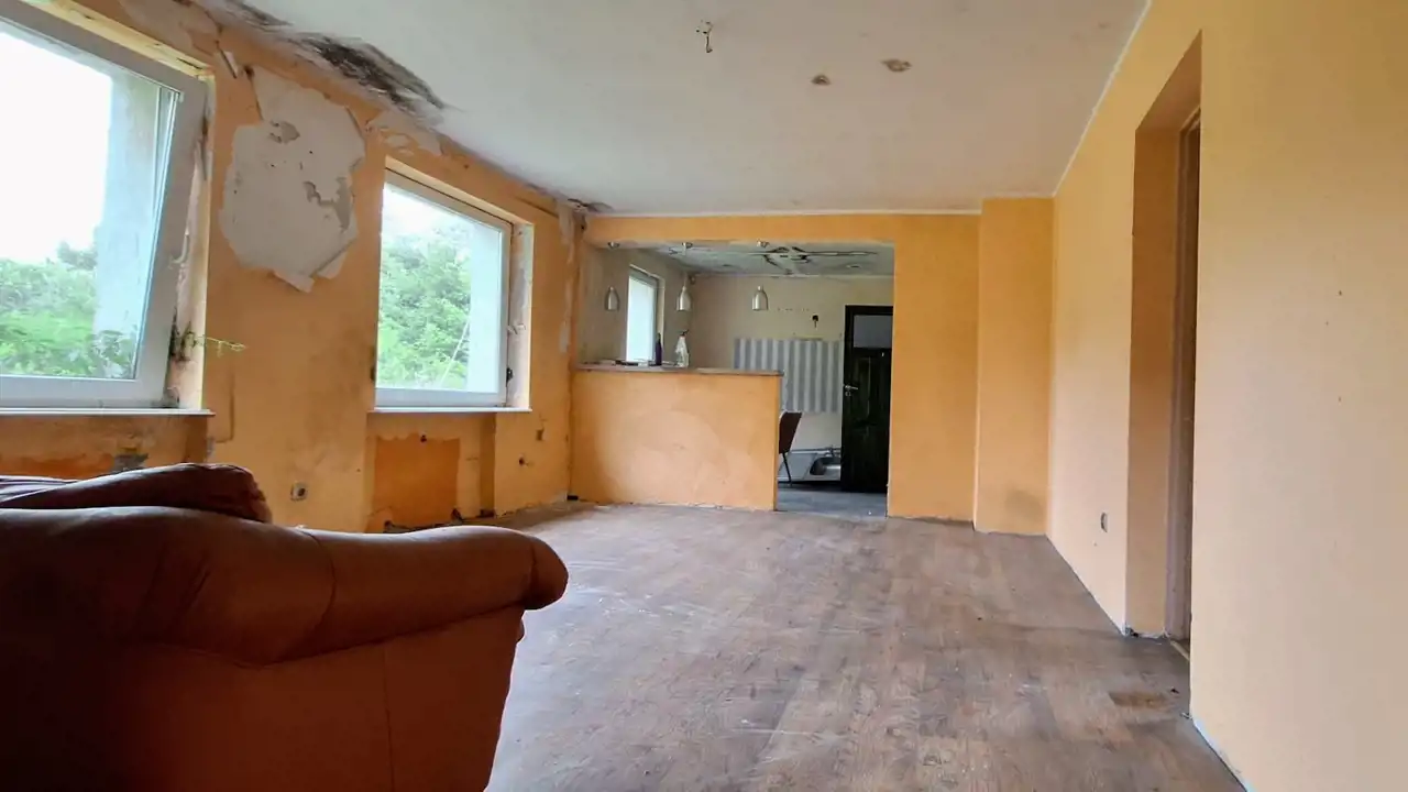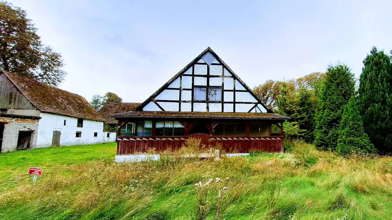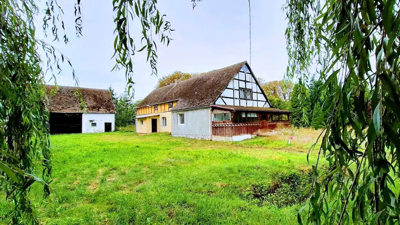 Budynek mieszkalny około 180m2 ( dwa niezależne mieszkania ). Jedno 4 pokoje, kuchnia, dwie łazienki. Drugie - 2 pokoje , kuchnia, łazienka. Dom wymaga generalnego remontu. Do tego stodoła drewniana oraz budynek stajni. Całość na dwóch działkach o łącznej powierzchni 1.3800 Hektara.