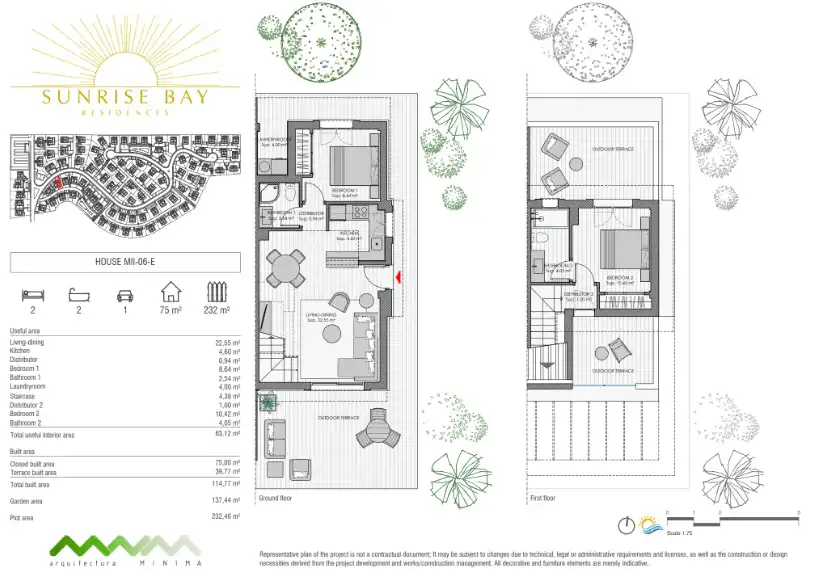 Sunrise Bay to zespół dwupiętrowych willi w zabudowie bliźniaczej z prywatnym ogrodem i garażem. Oferuje możliwość posiadania własnego prywatnego basenu.