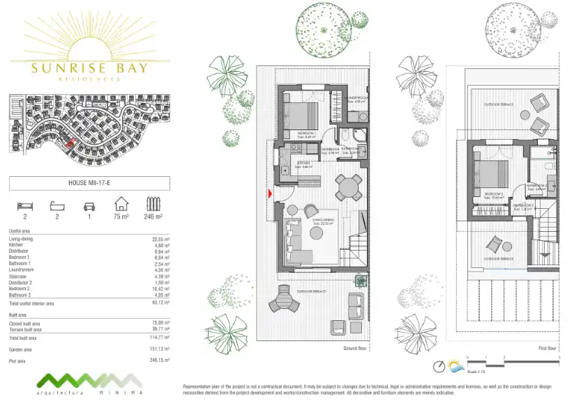 Sunrise Bay to zespół dwupiętrowych willi w zabudowie bliźniaczej z prywatnym ogrodem i garażem. Oferuje możliwość posiadania własnego prywatnego basenu.