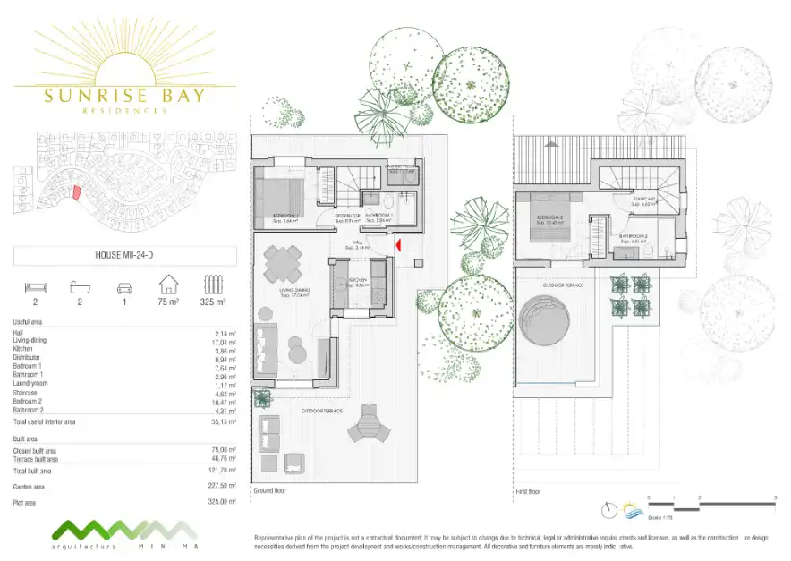 Sunrise Bay to zespół dwupiętrowych willi w zabudowie bliźniaczej z prywatnym ogrodem i garażem. Oferuje możliwość posiadania własnego prywatnego basenu.