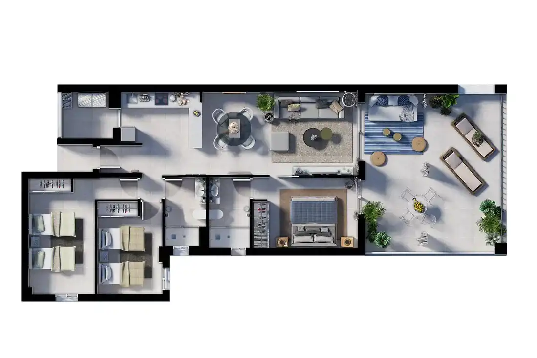 Canyamel Pins posiada różne typy mieszkań, aby zaspokoić Twoje potrzeby i komfort pod względem liczby pokoi, powierzchni i rozkładu. Canyamel Pins oferuje apartamenty z 2 i 3 sypialniami, 2 łazienkami, 1 łazienką i przestronnymi tarasami, dzięki czemu można cieszyć się bezkonkurencyjnym śródziemnomorskim klimatem.