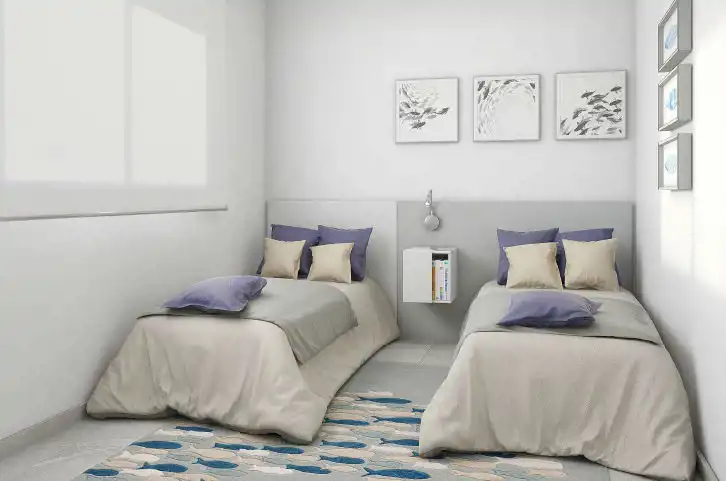 Osiedle oferuje apartamenty z 1,2 lub 3 sypialniami oraz z 1 lub 2 łazienkami.